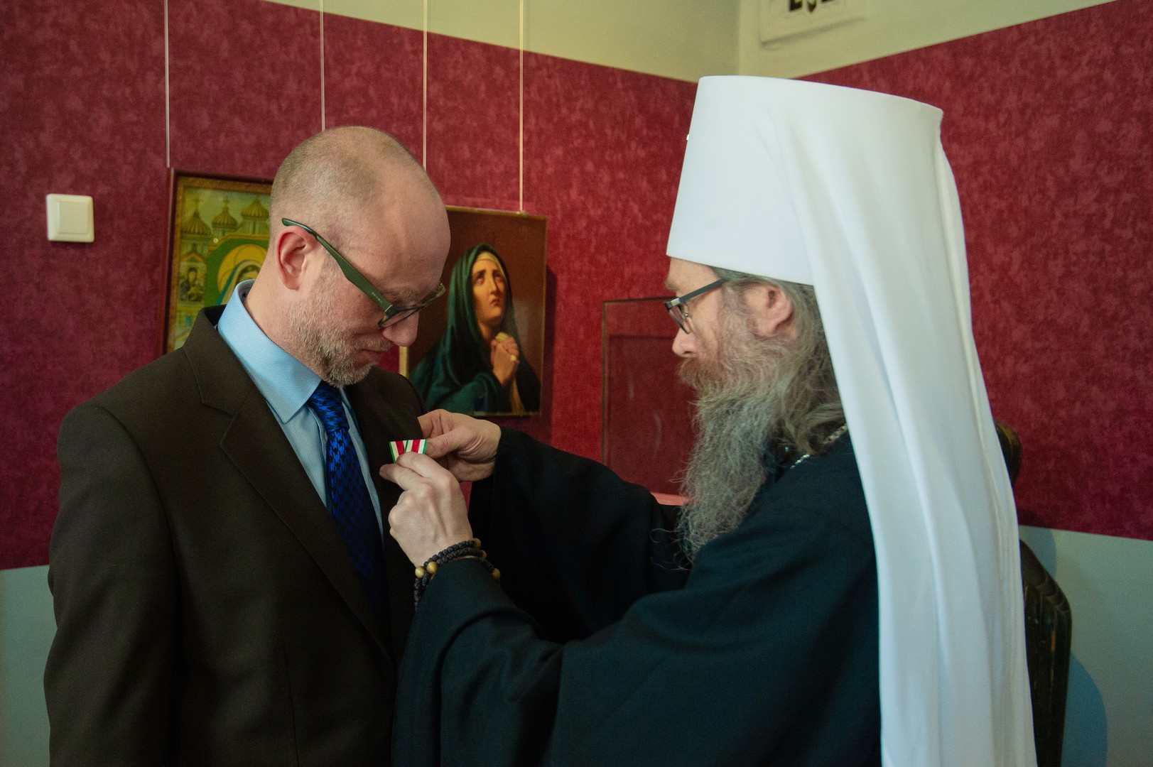 За огромный вклад за сохранение отечественной культуры и традиций Его Высокопреосвященство наградил директора музея Святослава Валерьевича Перехожева юбилейной медалью Русской Православной Церкви «В память 100-летия восстановления Патриаршества в Русской Православной Церкви».