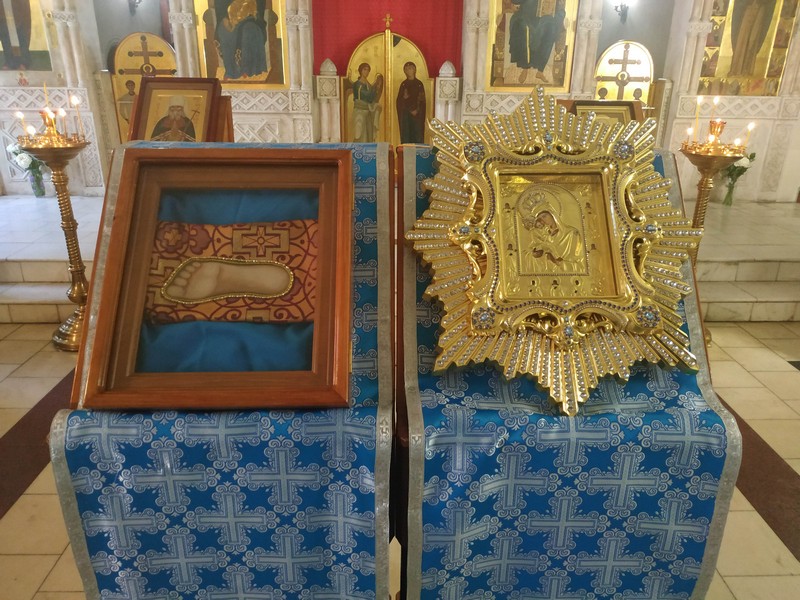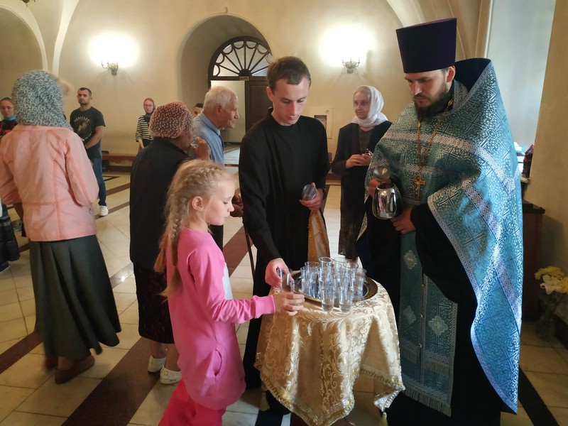 На полиелее прихожанам Богоявленского собора было предложено испить святой воды, привезенной в храм с Почаевской горы, где было явление Божией Матери монахам в 1340-м году.