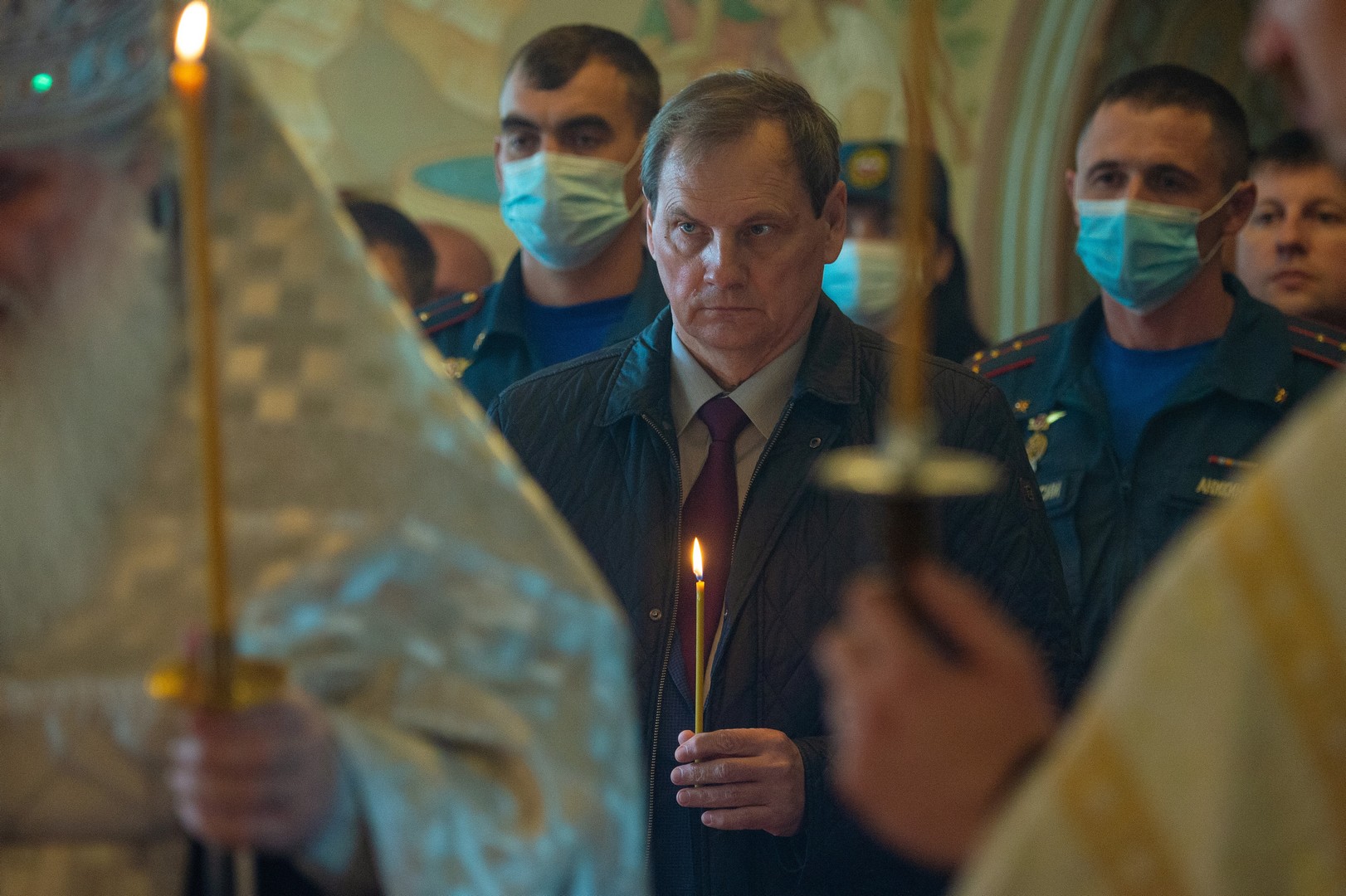|  |  | 8 сентября на межведомственных учениях по защите арктической зоны от чрезвычайных ситуаций в Норильске трагически погиб министр по делам гражданской обороны, чрезвычайным ситуациям и ликвидации последствий стихийных бедствий Российской Федерации Е.Н. Зиничев. 10 сентября по благословению митрополита Томского и Асиновского Ростислава в Воскресенском храме г. Томска была отслужена панихида по погибшему главе МЧС Евгению Зиничеву. Панихиду совершил секретарь Томской епархии архимандрит Иосиф (Еременко) в сослужении настоятеля Воскресенского храма иерея Дионисия Мелентьева, клириков Воскресенского храма иерея Феодора Евдокимова и диакона Димитрия Кремнева. На заупокойное богослужение в храм прибыли и молились первый заместитель начальника Главного управления МЧС России по Томской области, полковник внутренней службы М.В. Пряхин, руководители и личный состав структурных подразделений УМЧС, а также заместитель губернатора Томской области по вопросам безопасности И.В. Толстоносов и представители других силовых ведомств Томской области. По окончании панихиды архимандрит Иосиф передал самые искренние соболезнования руководству и сотрудникам областного управления МЧС от главы Томской митрополии, митрополита Томского и Асиновского Ростислава.            Фото: Пресс-служба Томской епархии