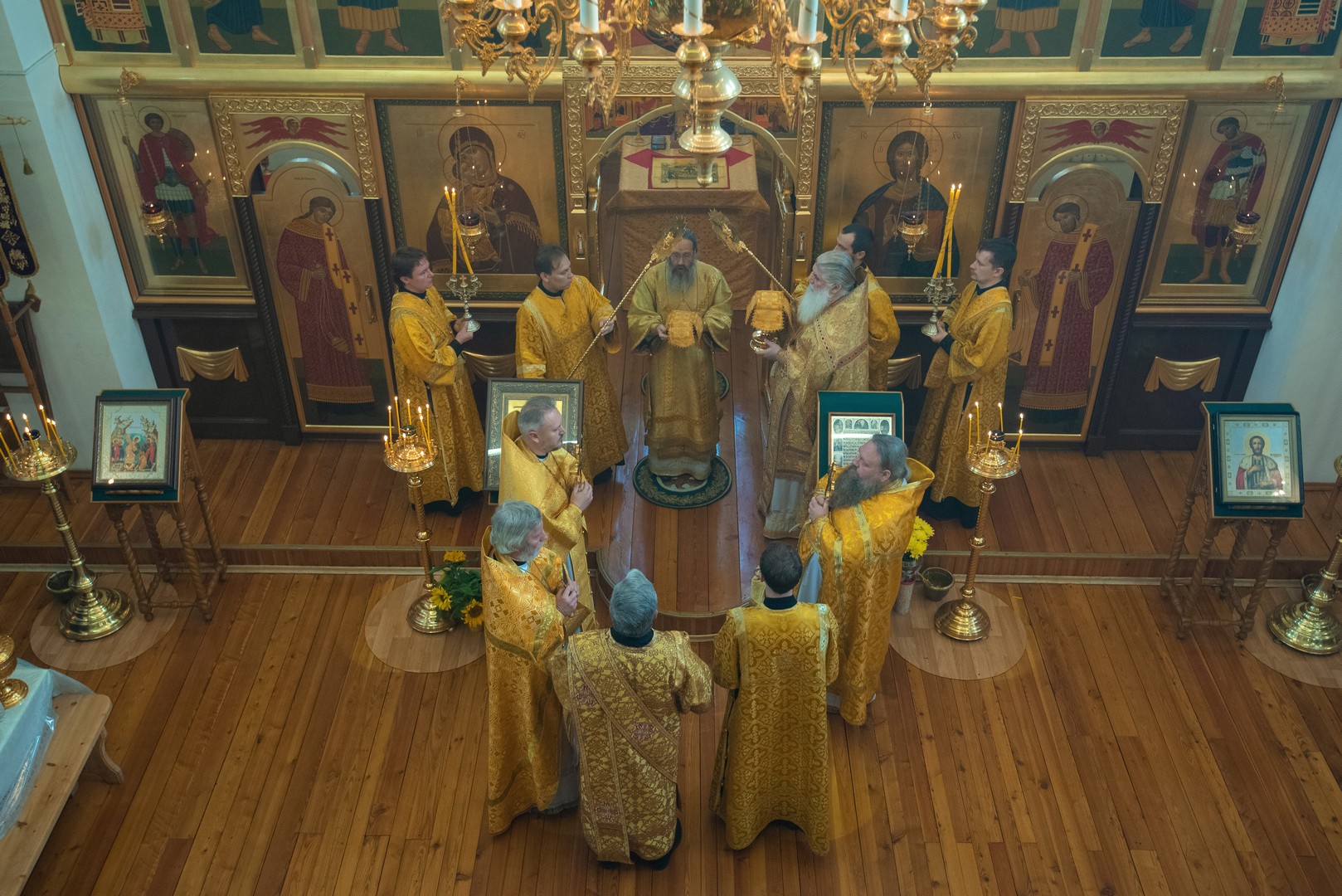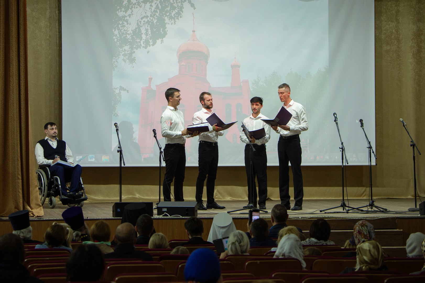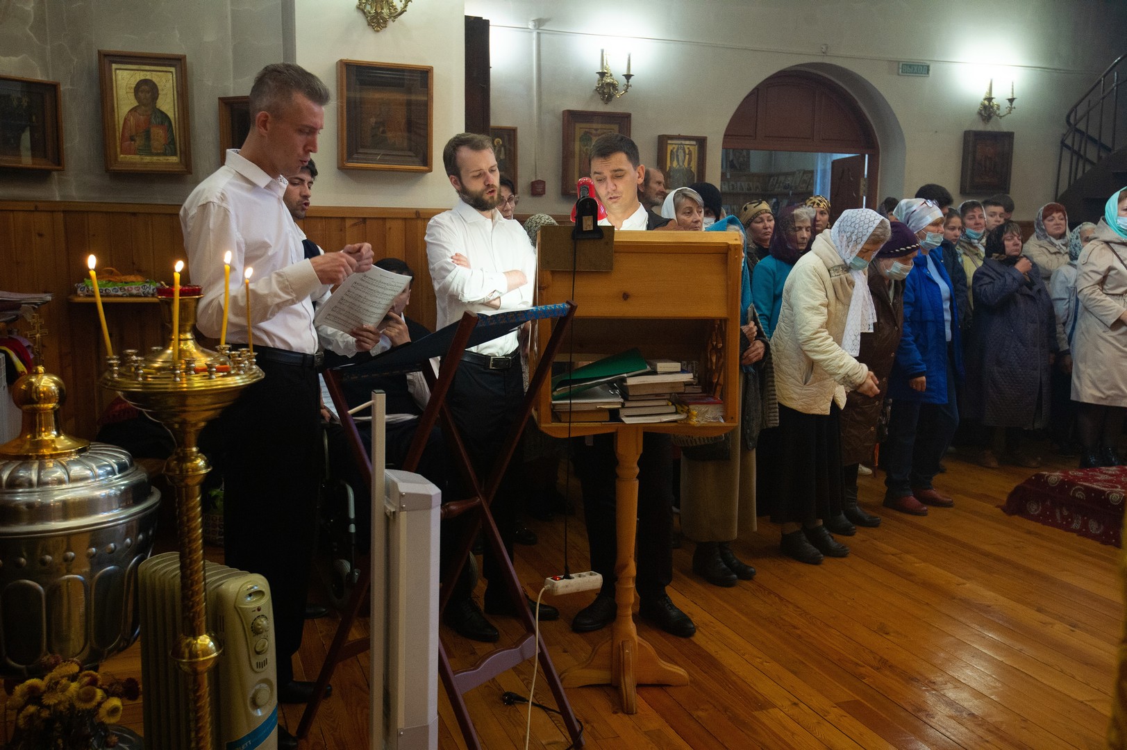 Богослужебные песнопения исполнил камерный хор из г. Санкт-Петербурга под управлением протодиакона Максима Альшевского.