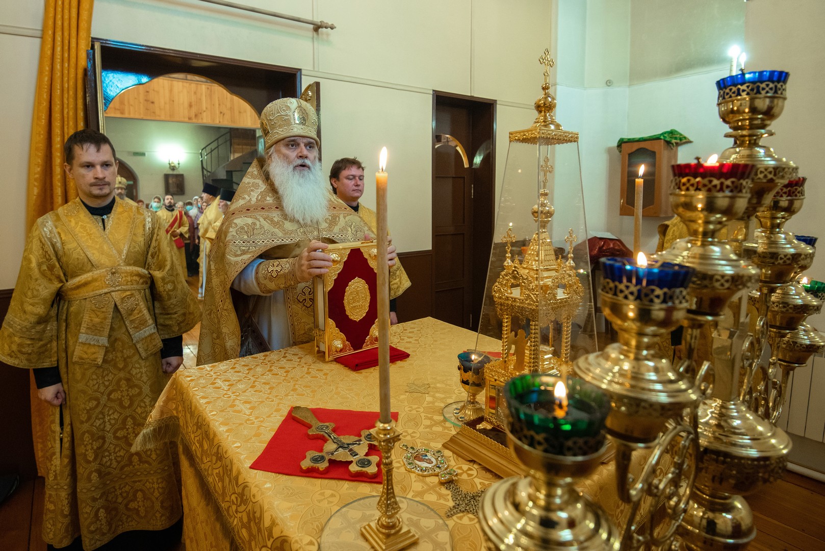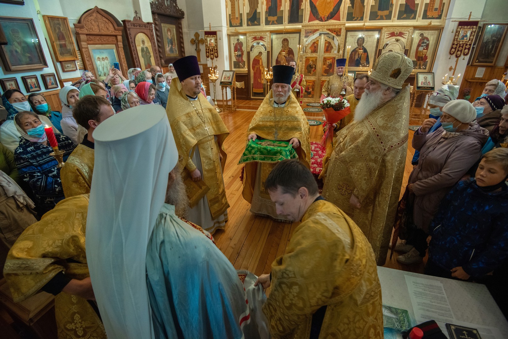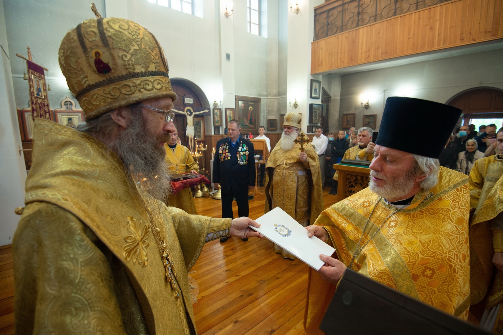 По окончании богослужения глава Томской митрополии поздравил настоятеля храма с предстоящим шестидесятилетним юбилеем и пятилетием служения на приходе, поблагодарил его за ревностное служение Церкви Христовой и ответственное несение возложенных на него послушаний, пожелал отцу Олегу здравия, помощи Божией в служении и вручил поздравительный адрес.