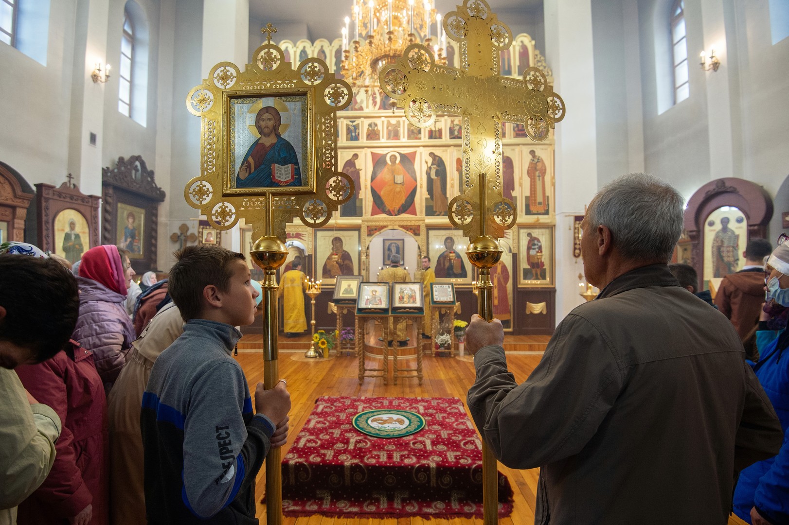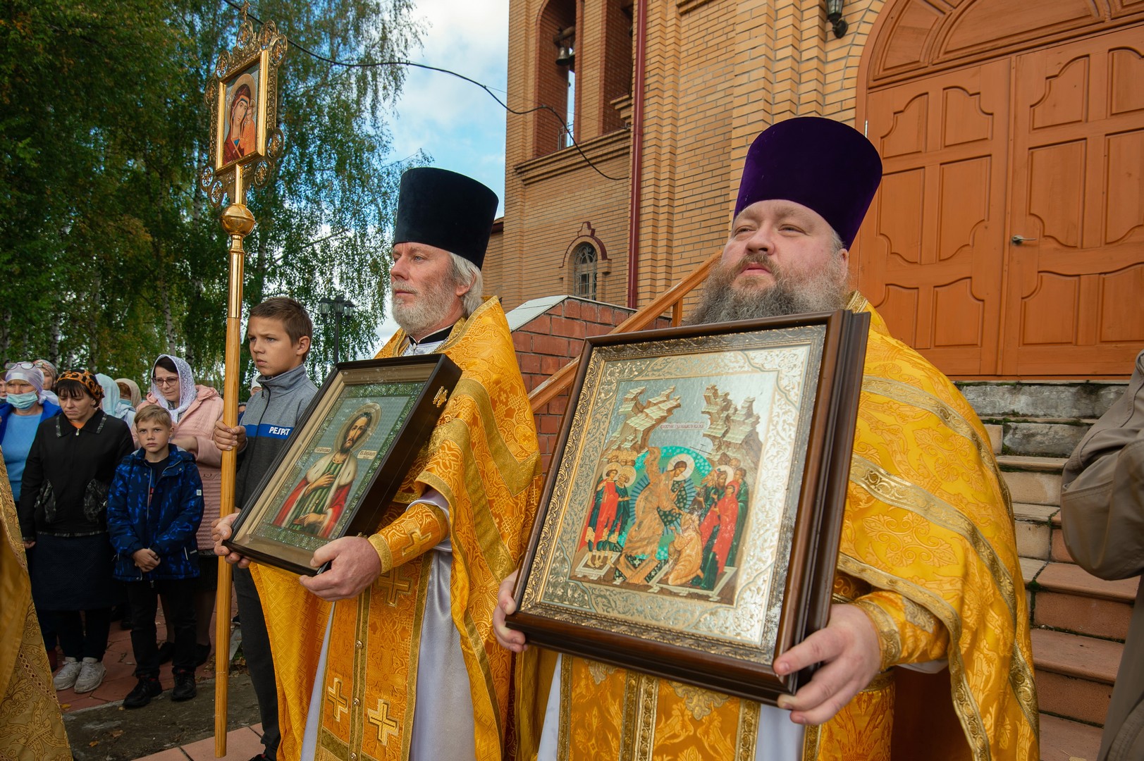 После Литургии состоялся крестный ход и славление благоверному великому князю Александру Невскому перед храмовой его иконой с частицей мощей.