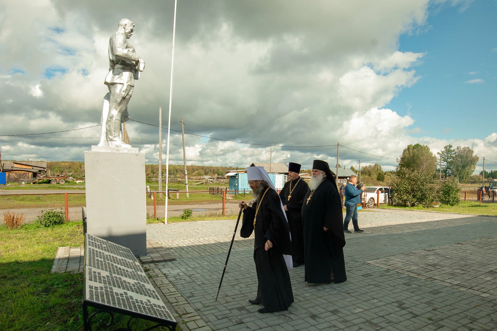 Затем митрополит Ростислав почтил память жителей села, павших в годы Великой Отечественной войны, у памятника, установленного около сельского Дома культуры.