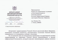 Департамент здравоохранения Томской области рассмотрел обращение руководителя Социального отдела Томской епархии протоиерея Николая Абрамова, касающееся посещения священниками пациентов в респираторных госпиталях. Как сообщается в ответе Департамента, на сегодняшний день в условиях пандемии новой коронавирусной инфекции все медицинские организации государственной системы здравоохранения на территории Томской области функционируют в режиме инфекционной безопасности, который позволяет минимизировать прямые контакты между заболевшими и здоровыми людьми. Поэтому священникам и их помощникам разрешено посещать больных только в исключительном случае при обращении родственников пациентов с просьбой о духовном попечении.