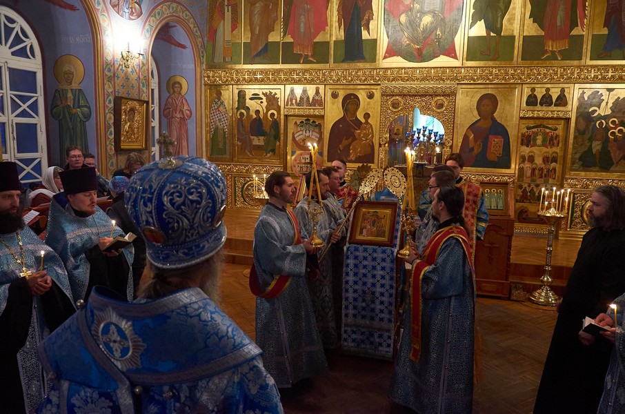Вечером 13 октября, накануне празднования Покрова Пресвятой Богородицы, митрополит Томский и Асиновский Ростислав возглавил Всенощное бдение в Богоявленском кафедральном соборе г. Томска. Его Высокопреосвященству сослужили настоятель храма Архистратига Божия Михаила в селе Турунтаево иерей Михаил Назаров и духовенство собора.