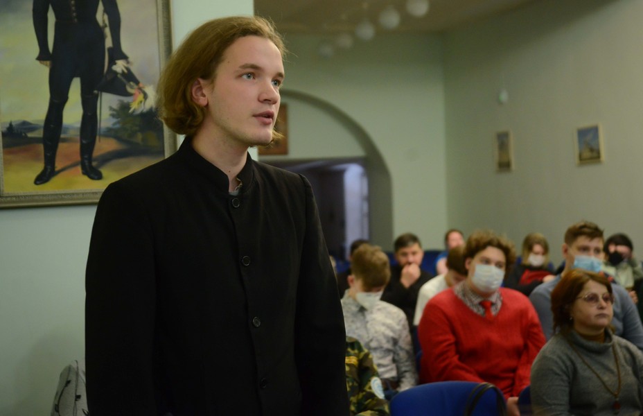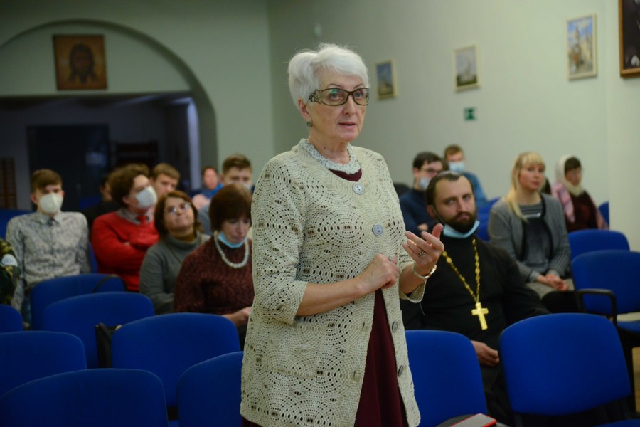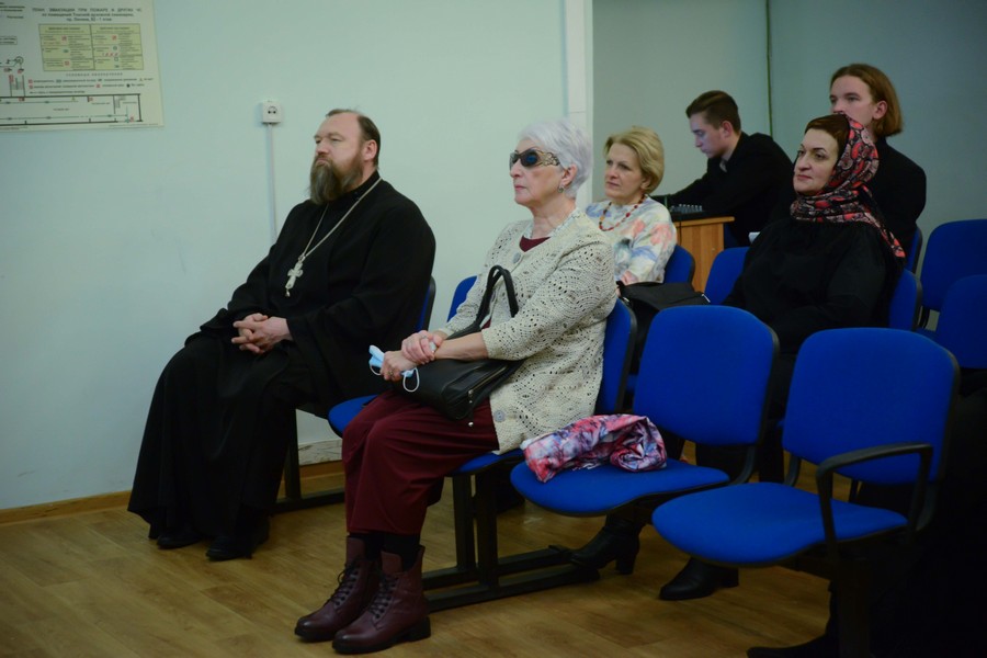 На лекцию ученого-историка в актовом зале Томской духовной семинарии собрались руководитель Отдела религиозного образования и катехизации Томской епархии протоиерей Святослав Зулин; проректор по воспитательной работе ТДС иерей Вячеслав Кабанин; доктор философских наук, профессор ТГПУ Ольга Тимофеевна Лойко; педагоги, семинаристы, студенты и все, интересующиеся данной темой.