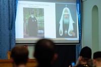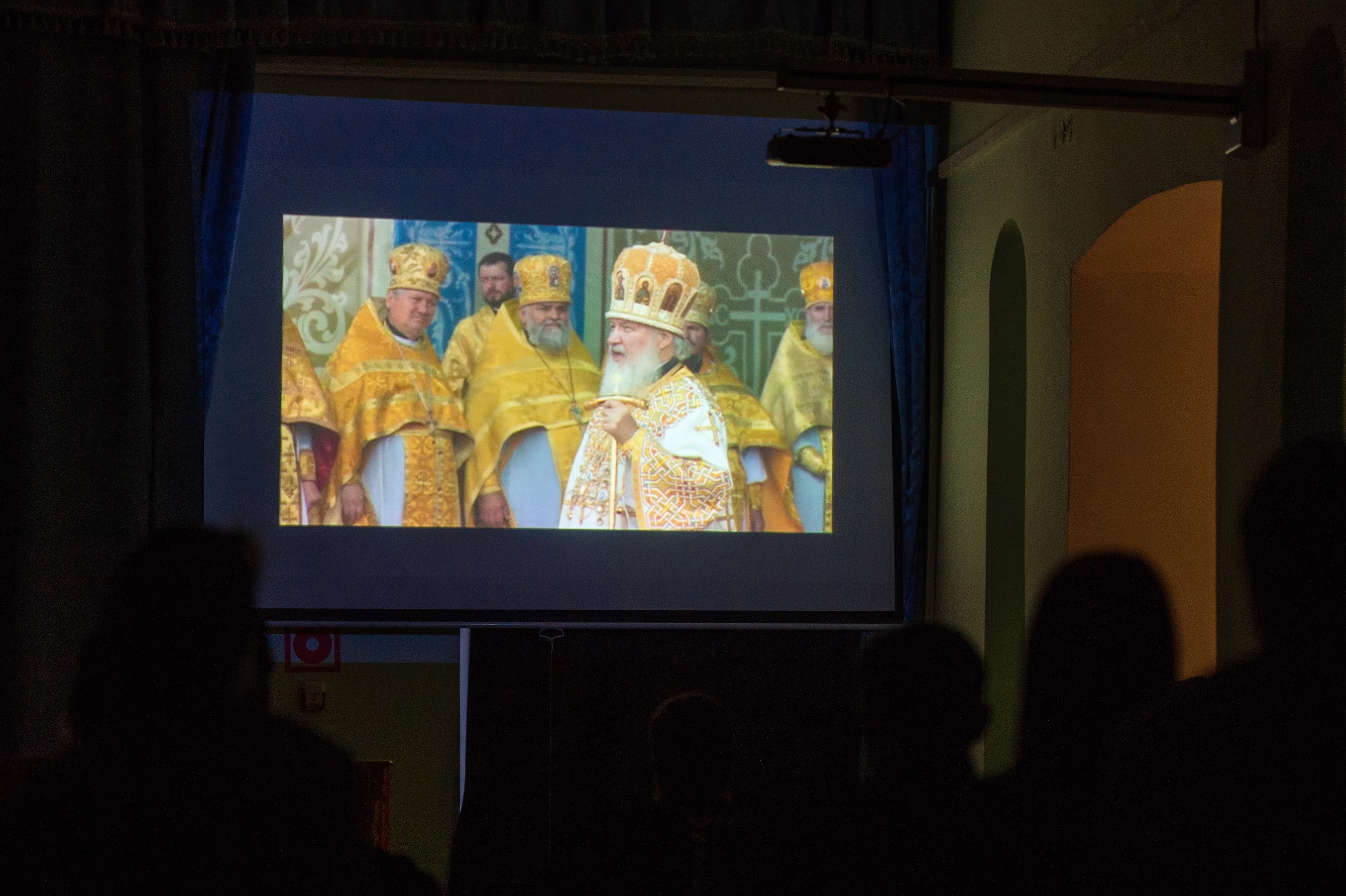 Во второй части мероприятия преподаватель Томской духовной семинарии иерей Антоний Слугин выступил с докладом «Жизненный путь Патриарха».