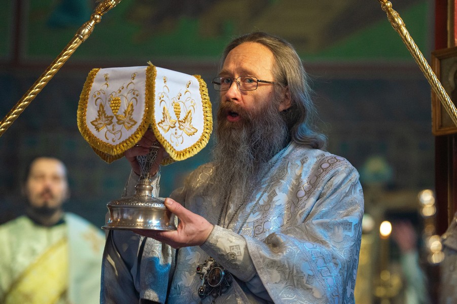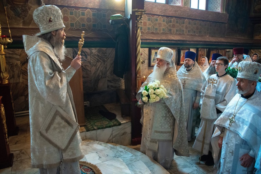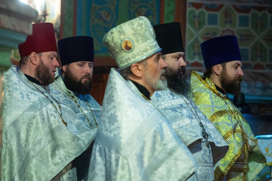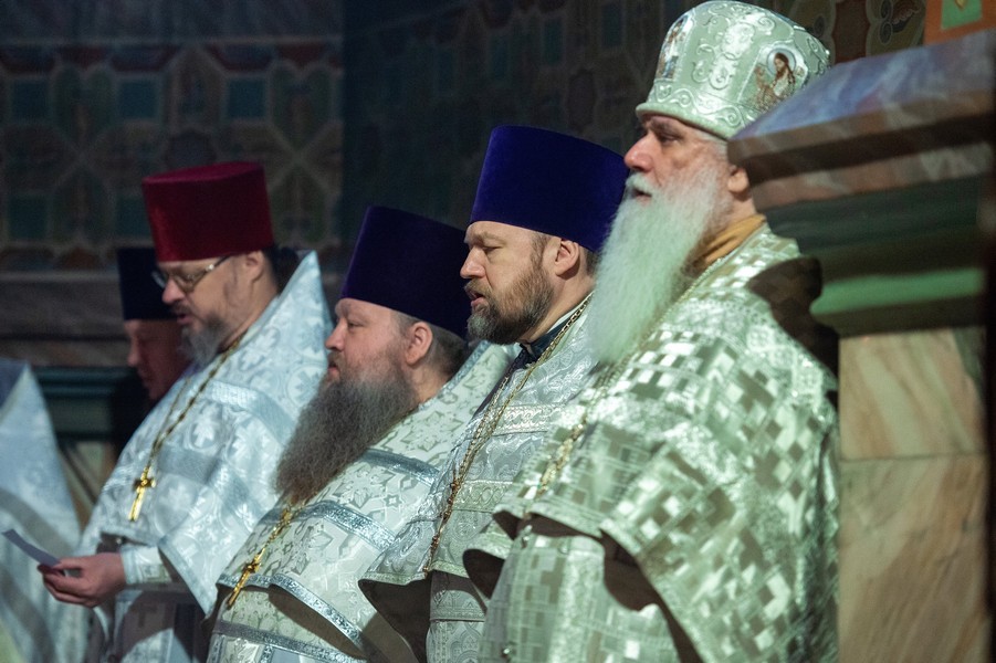По окончании богослужения состоялось славление Рождеству Христову, после которого архимандрит Иосиф от имени духовенства, сотрудников и прихожан собора поздравил архипастыря с праздником.