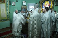 Так, больше 20 лет назад принял Христа просфорник Троицкого храма Александр Скулкин: в 1999-м он крестился. А в сегодняшний праздничный день митрополит Ростислав рукоположил его во диаконы. Таинство было совершено по завершении Евхаристического канона.