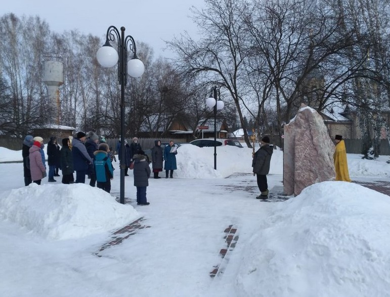 |  |  | 6 февраля, в день памяти Собора новомучеников и исповедников Церкви Русской – поминовения всех усопших, пострадавших в годы гонений за веру Христову, в селе Первомайском была совершена панихида по усопшим. Богослужение совершил настоятель Свято-Троицкого храма иерей Владимир Лукьяненко. По окончании Божественной литургии от Свято-Троицкого храма был совершен крестный ход к «Камню скорби», который установлен в память о жертвах политических репрессий в Причулымском крае. Среди пострадавших от богоборческой власти в годы гонений было немало священнослужителей и мирян. Участники заупокойного богослужения молитвенно помянули всех усопших, пострадавших за веру Христову от богоборческой власти. Напомним, что «Камень скорби» установлен рядом со Свято-Троицким храмом в селе Первомайском в 2006 году.