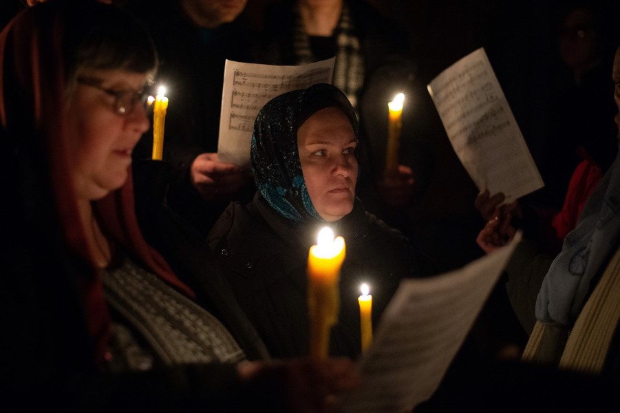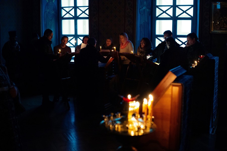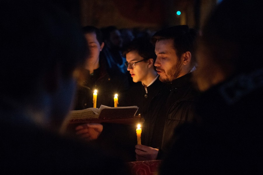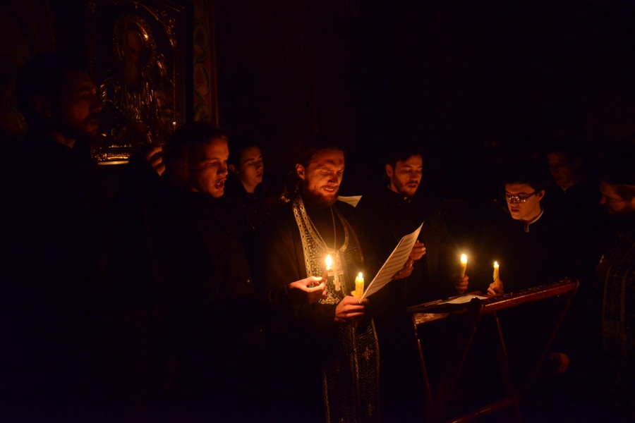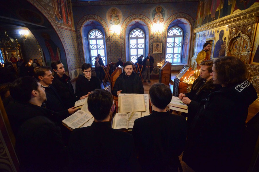 За богослужением песнопения исполняли хоры Богоявленского и Петропавловского соборов, Знаменского храма и пастырского отделения ТДС.
