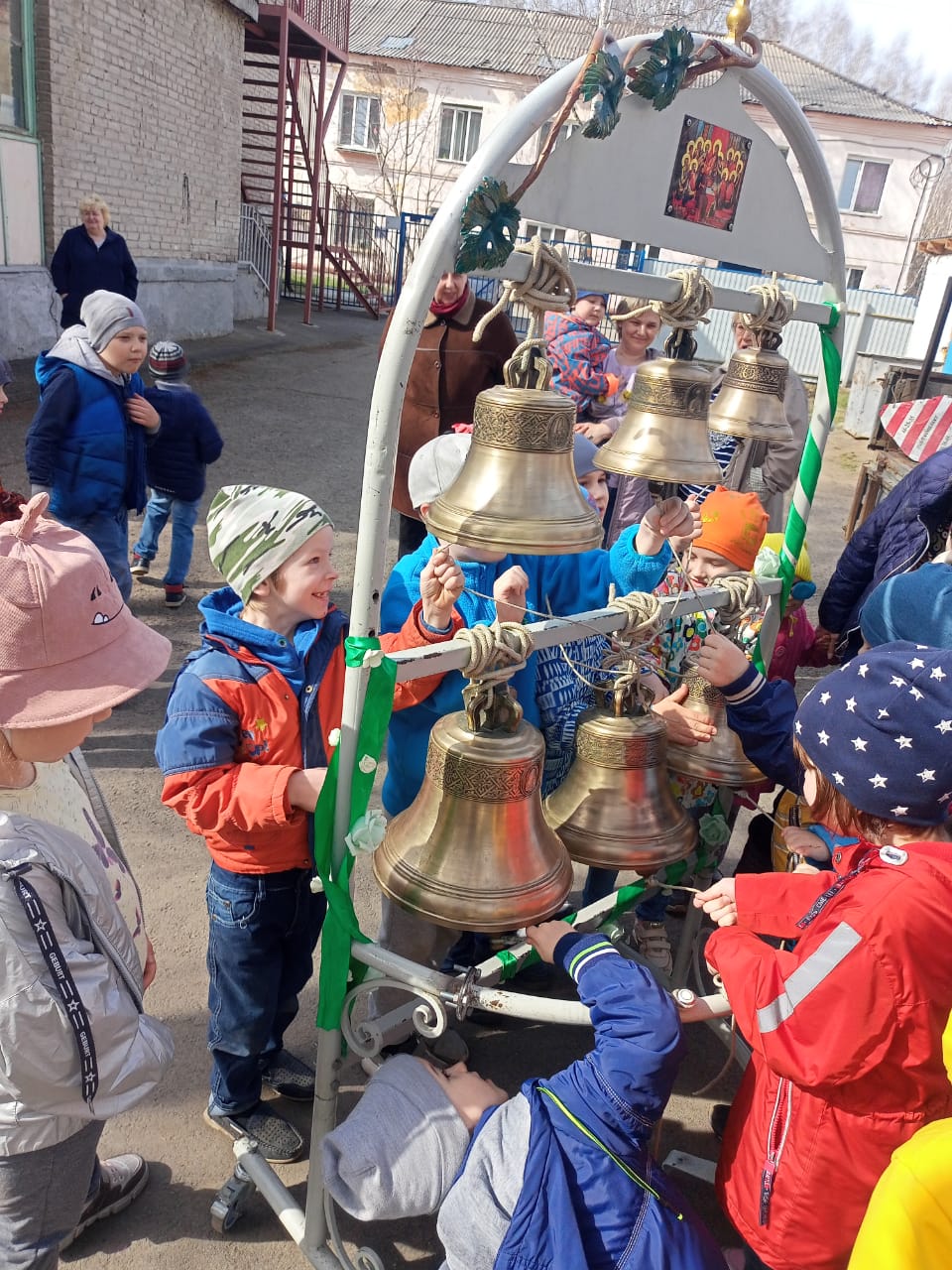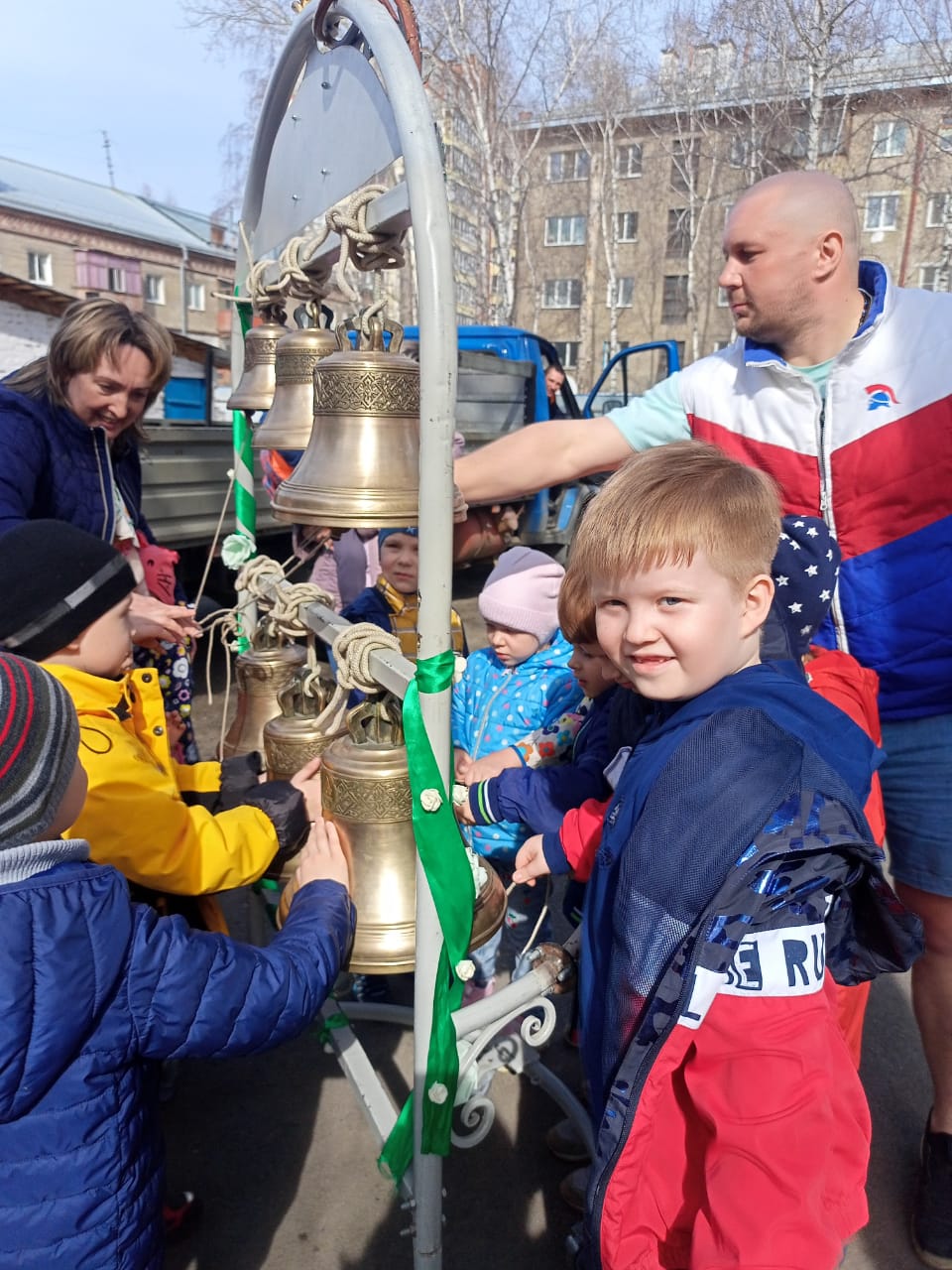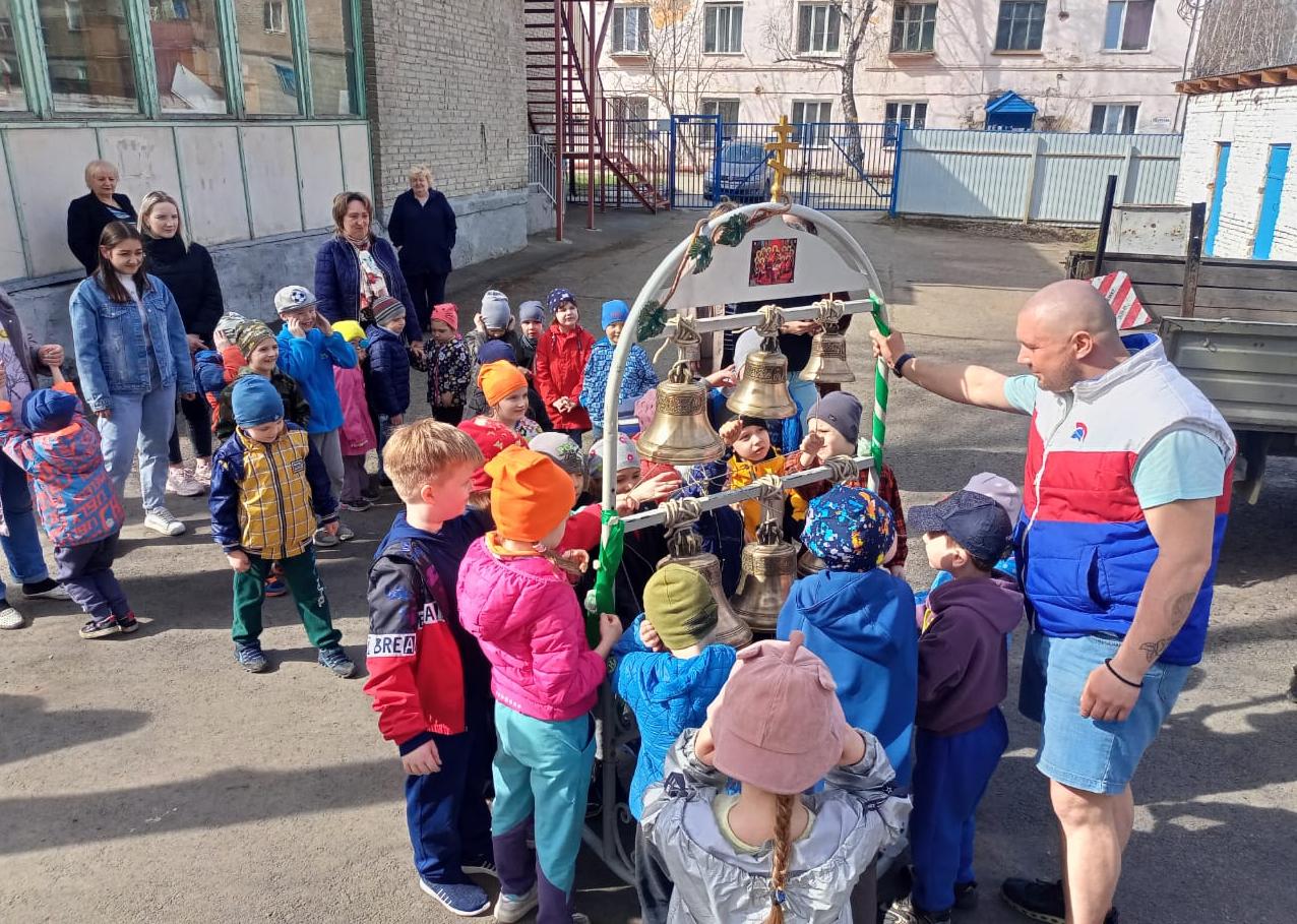 28 апреля звонницу привезли в МАДОУ Детский сад общеразвивающего вида № 77 г. Томска, которую встретили 120 детей и воспитатели.