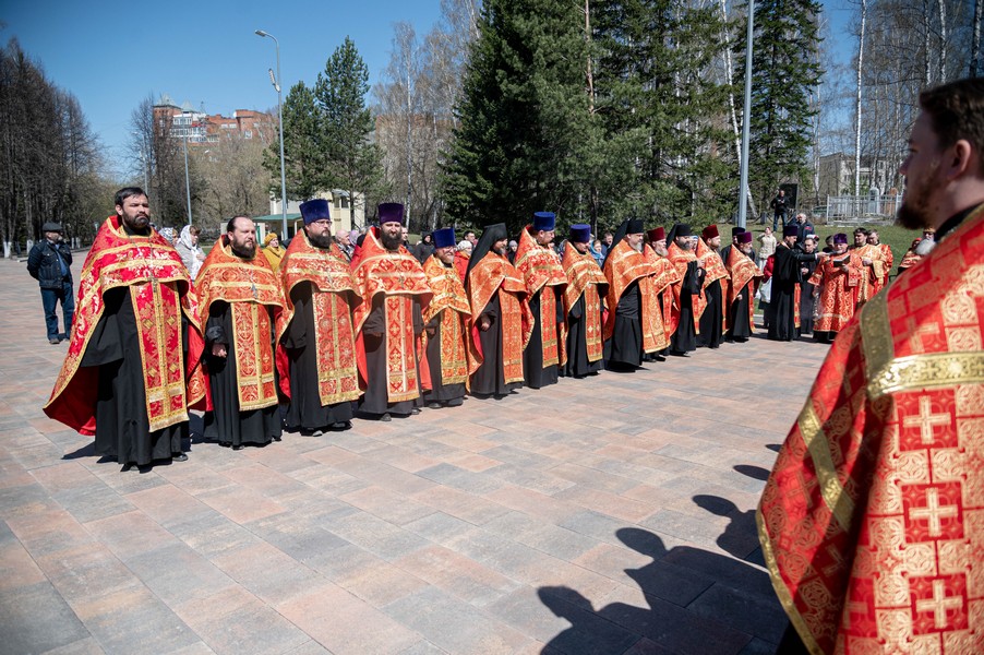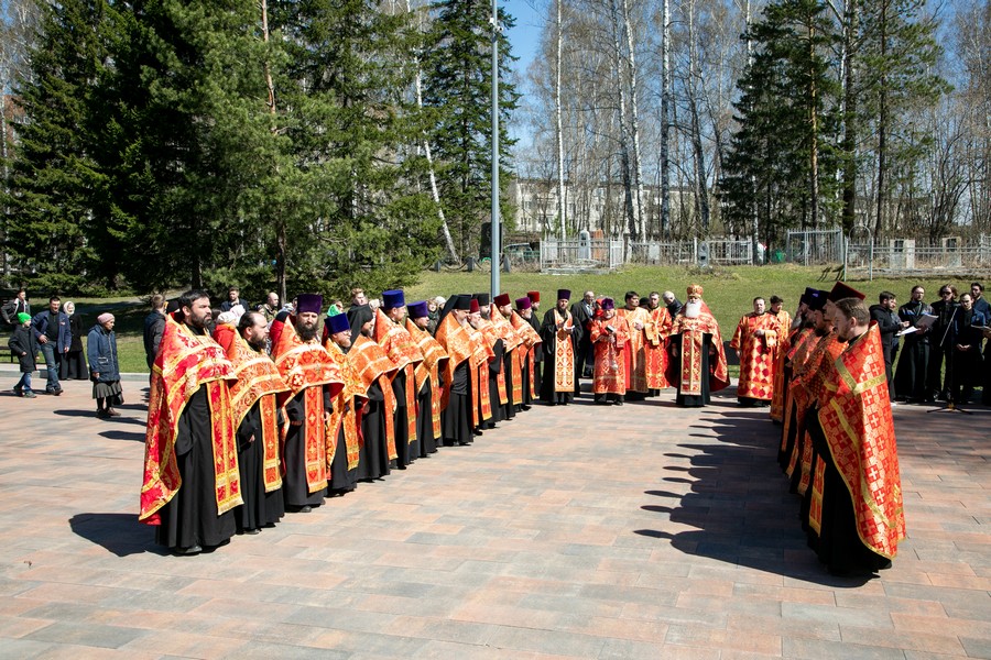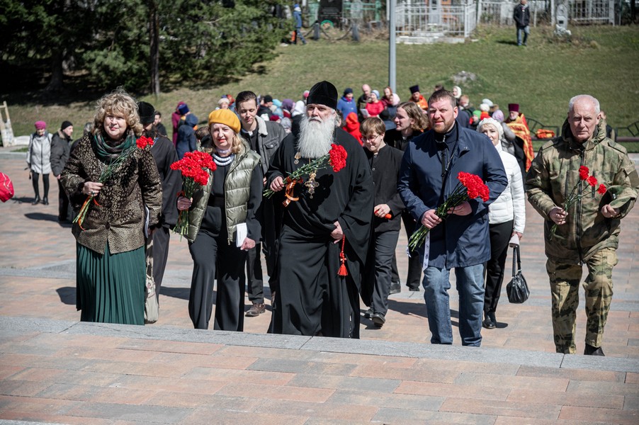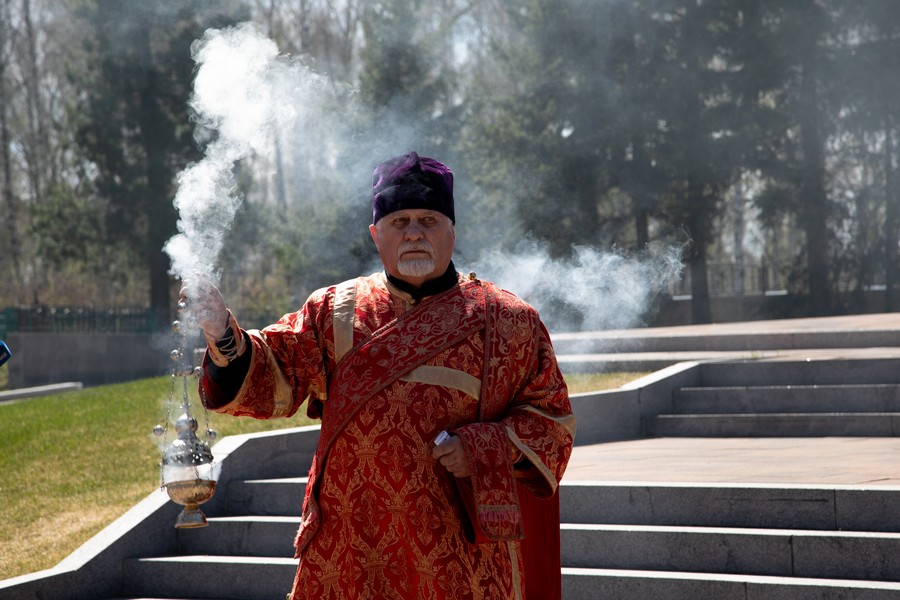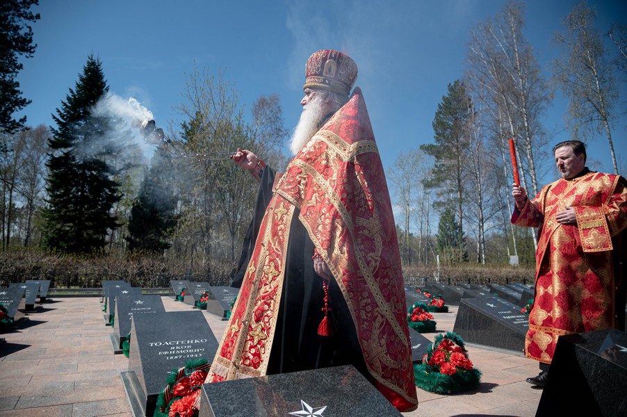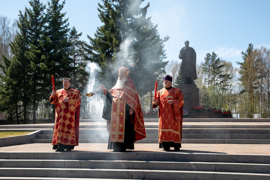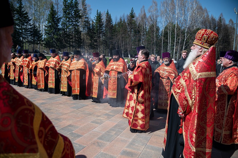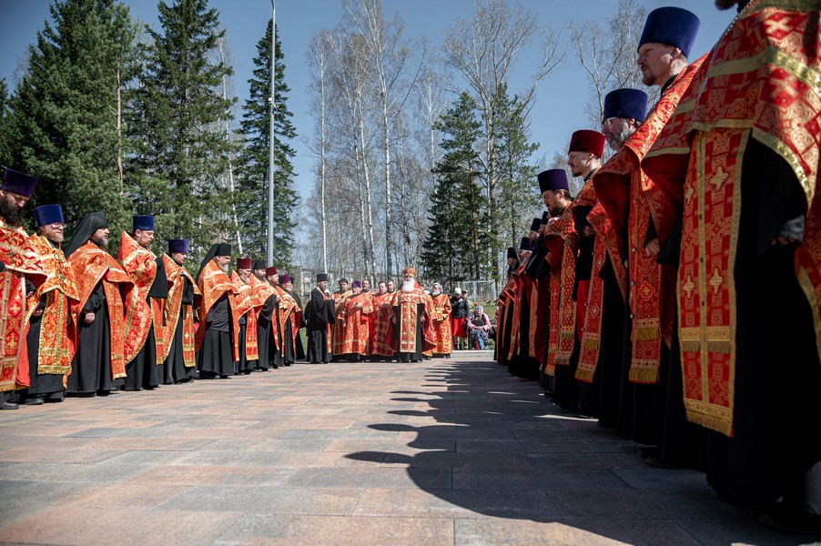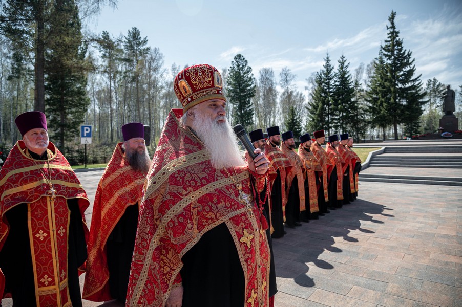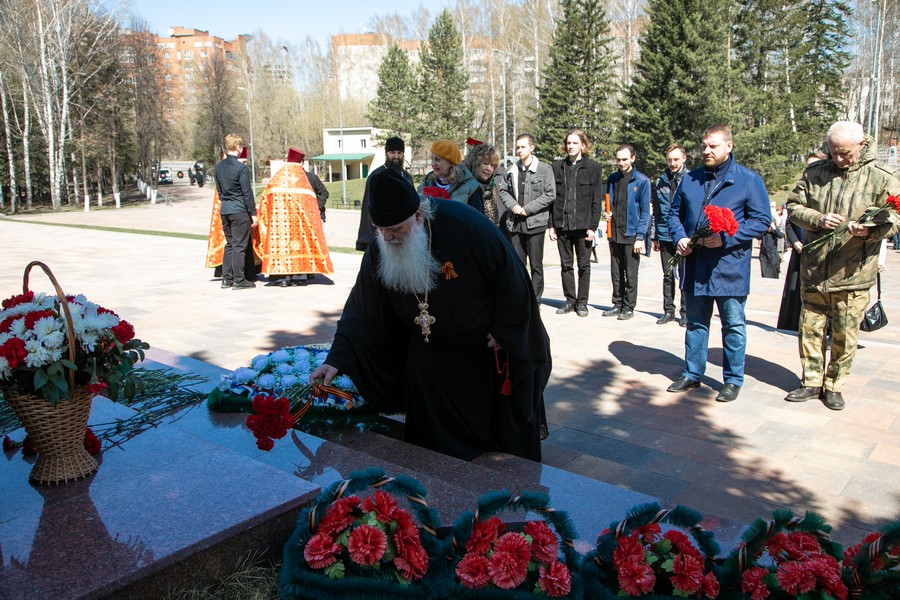 После ограничений, связанных с моровым поветрием, мы по благословению митрополита Томского и Асиновского Ростислава в канун празднования 77-летия Победы в Великой Отечественной войне вновь собрались на этом величественном месте, где покоится прах героев Великой войны. В священной тишине этого места прозвучали Божественные песнопения панихиды. Эти церковные молитвы возвещают победу жизни над смертью, возвещают Воскресение, вечную блаженную жизнь всех, кто отдал свои драгоценные жизни ради Великой Победы, совершил духовный подвиг, явив высшее проявление любви, о которой сказал Господь: "Нет больше той любви, как если кто положит душу свою за друзей своих" (Ин. 15: 13). В этих молитвах нет печали, но духовное утешение, потому что в эти пасхальные дни мы "смерти празднуем умерщвление, адово разрушение, иного жития вечнаго начало".