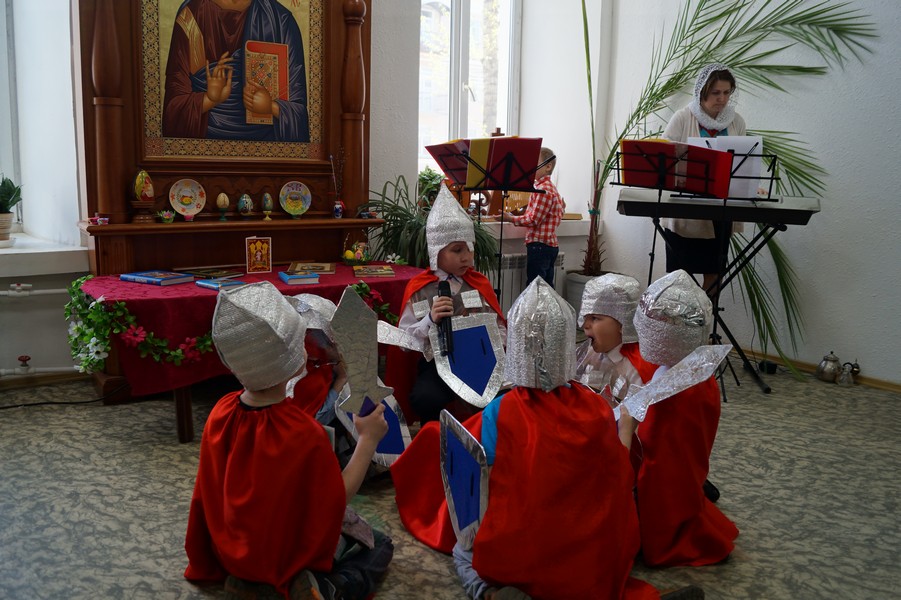 Юные музыканты воскресной школы продолжили праздник музыкально-литературной композицией, посвященной женам-мироносицам (руководитель – Ольга Юрьевна Семина).