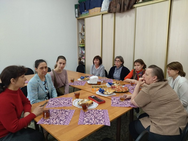 Педагоги воскресной школы во главе с Ольгой Петровной Водневой, специалистом ОРОиК Томской епархии по работе с воскресными школами, пригласили гостей в одну из учебных комнат, где познакомили с готовящимся новым проектом «Ковчег Завета».