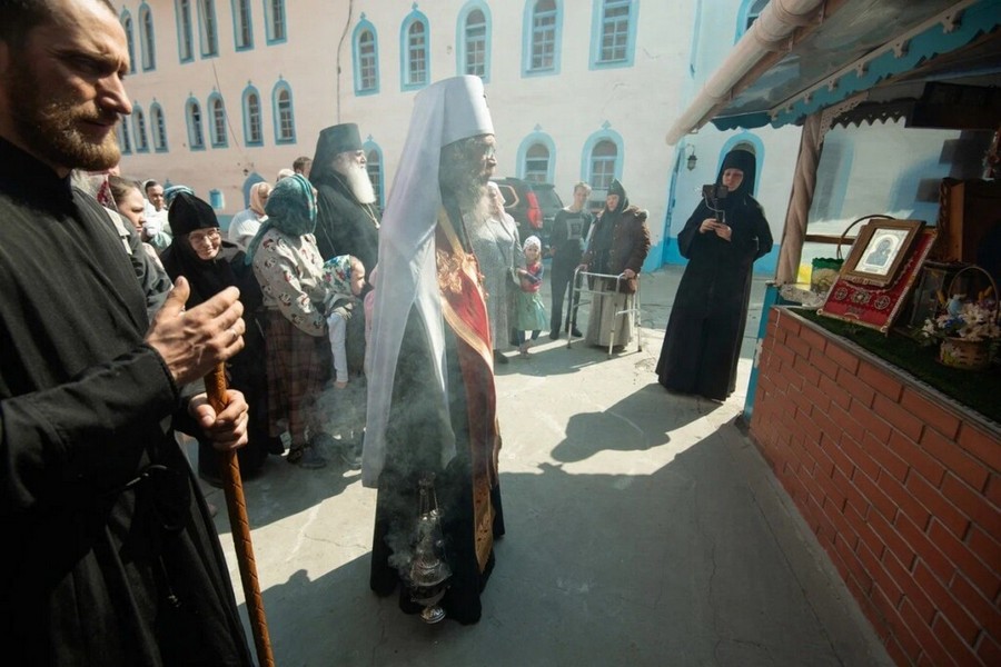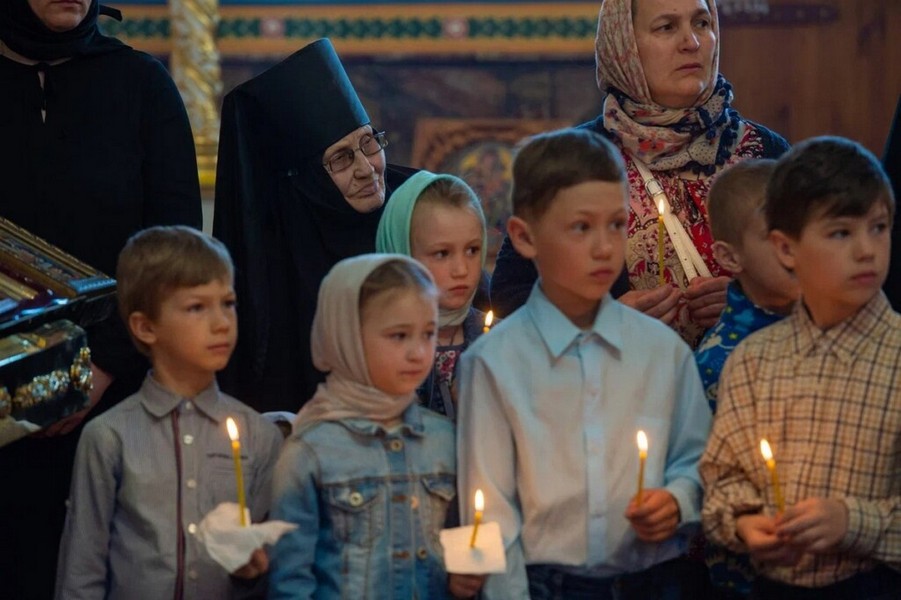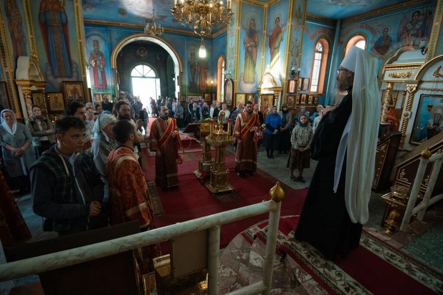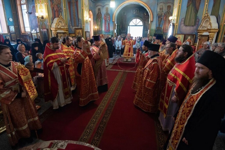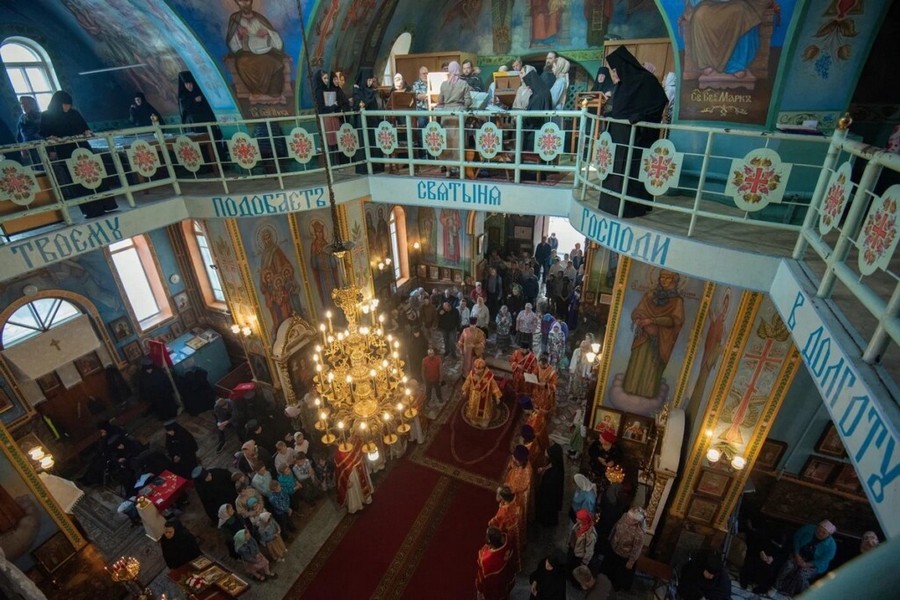 За богослужением молились игумения Свято-Никольского женского монастыря с. Могочино Ирина (Селиверстова) с сестрами, паломники и гости обители.