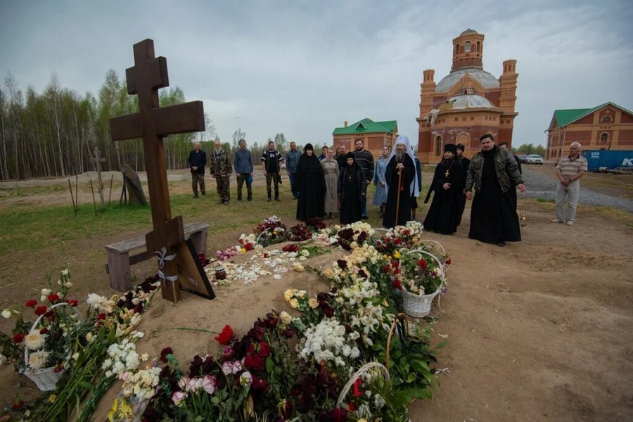 По окончании Литургии митрополит Ростислав совершил литию о упокоении основателя Свято-Никольского монастыря архимандрита Иоанна (Луговских) на месте его погребения.