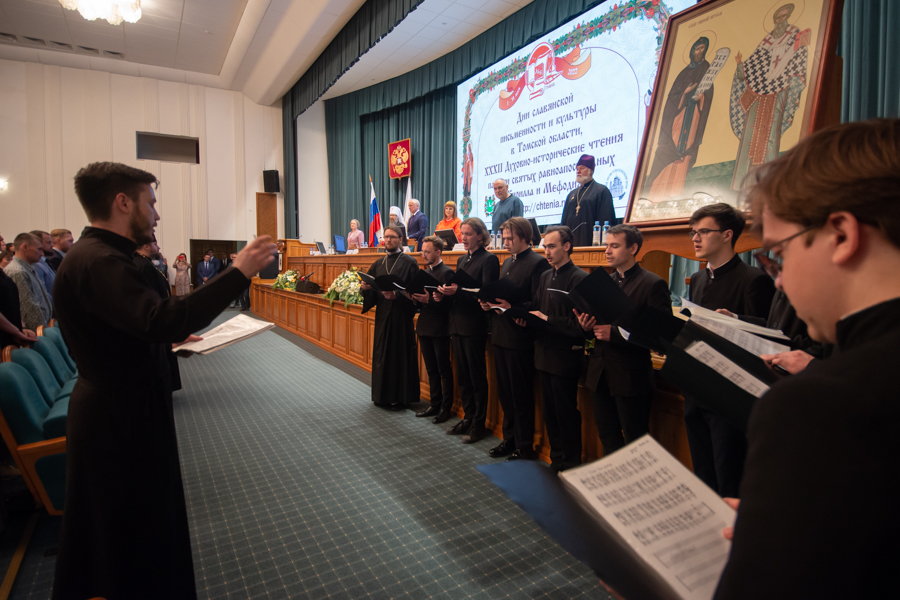 Торжественность события подчеркнуло также исполнение хором Томской духовной семинарии пасхальных песнопений и гимна святым словенским учителям.