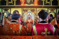 За богослужением пел мужской хор под управлением регента Игоря Гончарова.