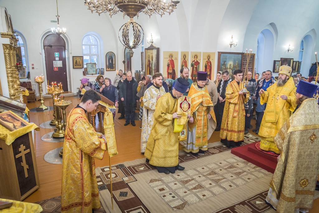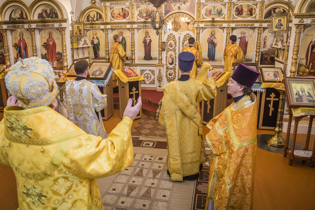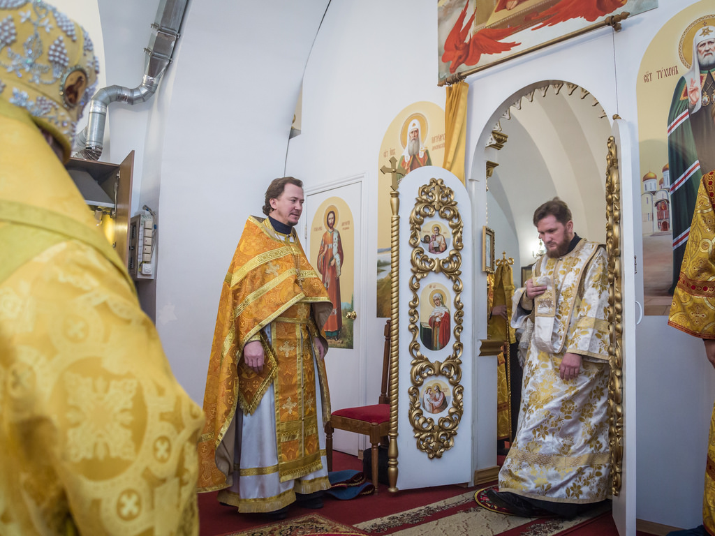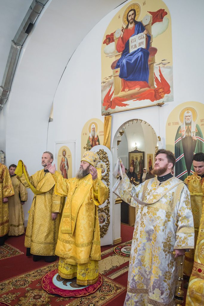 После богослужения владыка обратился к духовенству и прихожанам со словами проповеди, напомнив что в этот день Русская Православная Церковь совершает память святителя Тихона, Патриарха Московского и память Отцов Поместного Собора Церкви Русской 1917-1918 г.г.