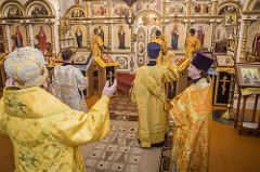 Его Высокопреосвященству сослужили благочинный Завьяловского округа протоиерей Дмитрий Леонтьев, настоятель храма священник Иаков Зайцев и клирик прихода протоиерей Сергий Шведов.