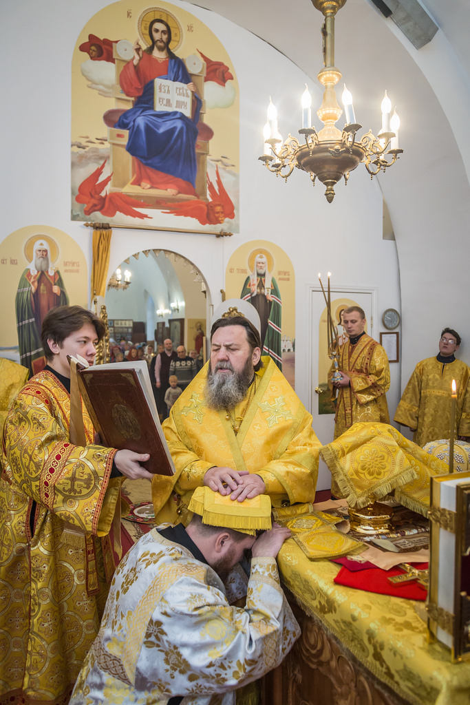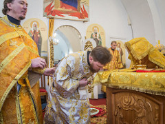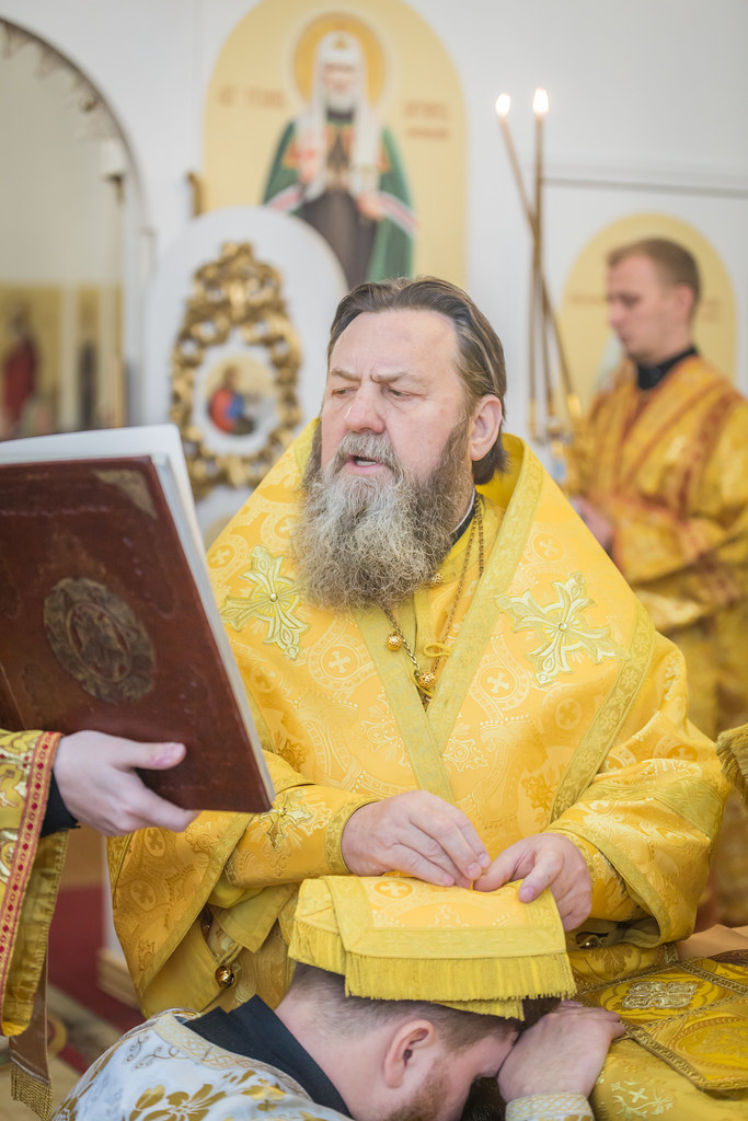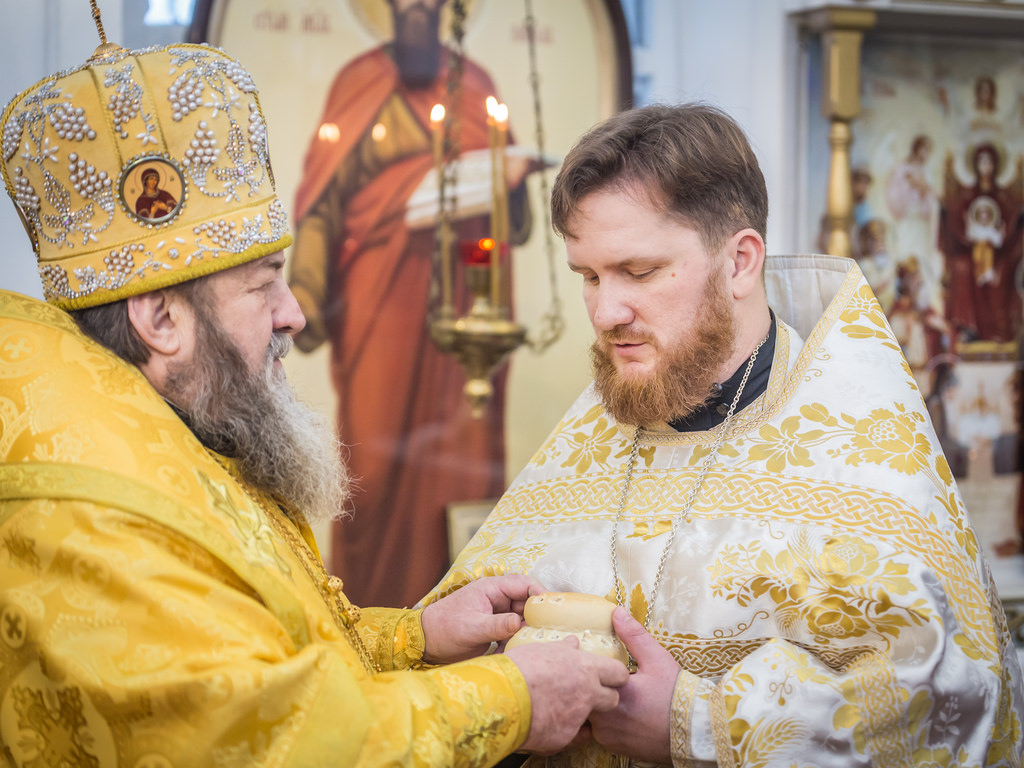 За литургией архипастырь совершил иерейскую хиротонию клирика Александро-Невского собора г. Ижевска диакона Романа Кулябина для служения в храме Покрова Пресвятой Богородицы с. Каменное Завьяловского района.