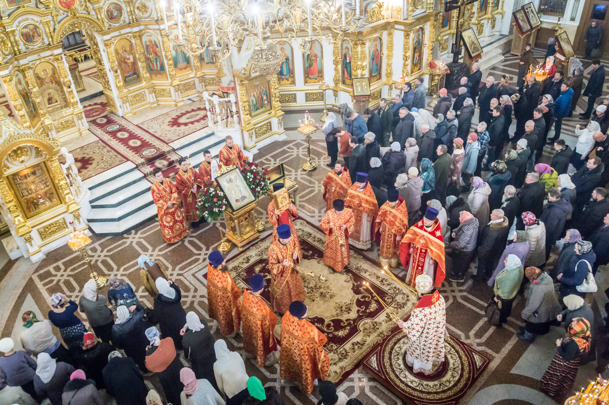 Утром, в день праздника, владыка совершил в храме Божественную литургию. Его Высокопреосвященству сослужили ключарь храма протоиерей Роман Воскресенских, настоятель храма Иверской иконы Божией Матери г. Ижевска протоиерей Алексий Спасский, председатель Комиссии Ижевской епархии по канонизации святых священник Георгий Харин и клирики собора.