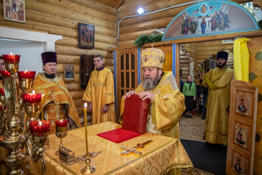 В сослужении благочинного Ижевского округа протоиерея Димитрия Леонтьева, секретаря-референта Ижевского епархиального управления диакона Илии Медведева и настоятеля прихода священника Романа Кулябина владыка совершил здесь Божественную литургию.