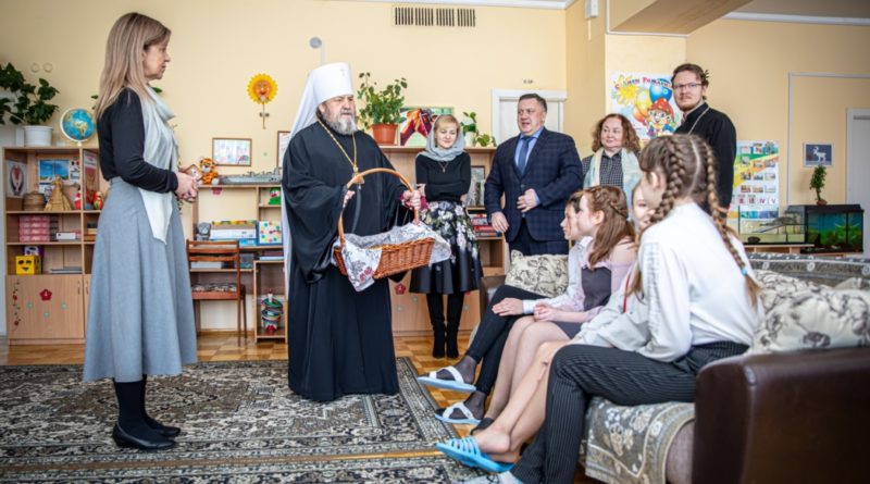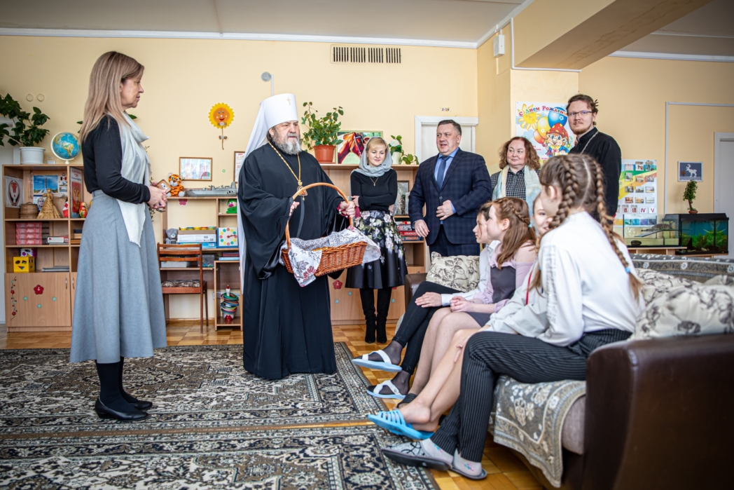 Затем владыка встретился с детьми и поздравил их с днем памяти Сорока мучеников севастийских, которых Церковь чтит 22 марта. Владыка рассказал детям об этом празднике: о том, что это день памяти мучеников, которые пострадали за Христа в 320 году в Севастии (территория современной Турции). Праздник особенно почитался на Руси и имел свои традиции. Например, в этот день пекли «жаворонков» из теста. Владыка тоже привез с собой таких «жаворонков» и подарил каждому ребенку.