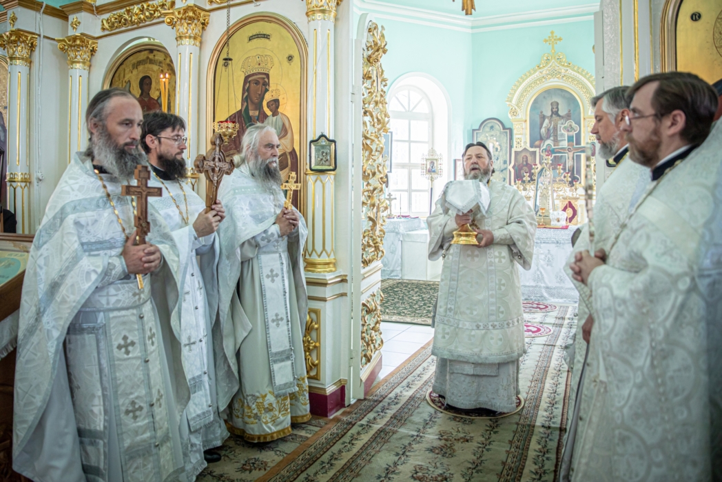 Утром, в день праздника архипастырь посетил Успенский женский монастырь с. Перевозное, главный храм которого посвящен Вознесению.