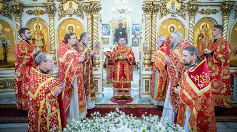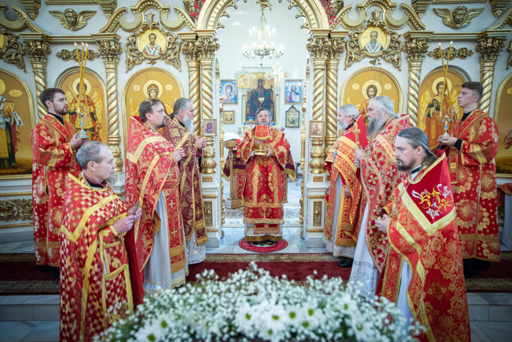 В завершение литургии состоялся крестный ход вокруг храма, после чего правящий архиерей обратился к духовенству и прихожанам с проповедью.