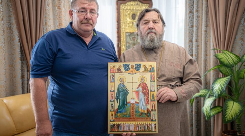 Александр Геннадьевич передал в дар владыке икону под названием «Держава». Архипастырь поблагодарил за столь ценный подарок и сказал, что образ будет храниться в Михаило-Архангельском кафедральном соборе г. Ижевска.