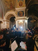 Диаконский чин возглавил первый соборный протодиакон Максим Коробицын. Пел мужской архиерейский хор под управлением Начальника канцелярии Митрополии диакона Дионисия Коржа.