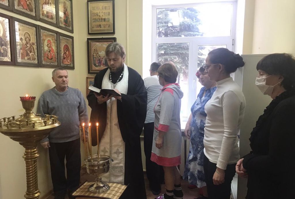 Также батюшка совершил обход больницы с окроплением помещений св.водой и тяжелобольных лежачих пациентов в их палатах.