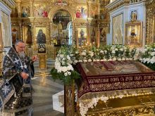 Владыке сослужило соборное духовенство. Пел хор под управлением М.Киселевой