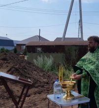 По благословению митрополита Уфимского и Стерлитамакского Никона богослужение по этому случаю совершил настоятель строящегося храма священник Анатолий Киселев, отслужив водосвятный молебен с акафистом преп.Сергию игумену Радонежскому.