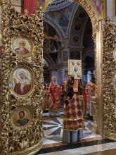 На сугубой ектенье были вознесены прошения и молитвы об избавлении от пандемии коронавируса.