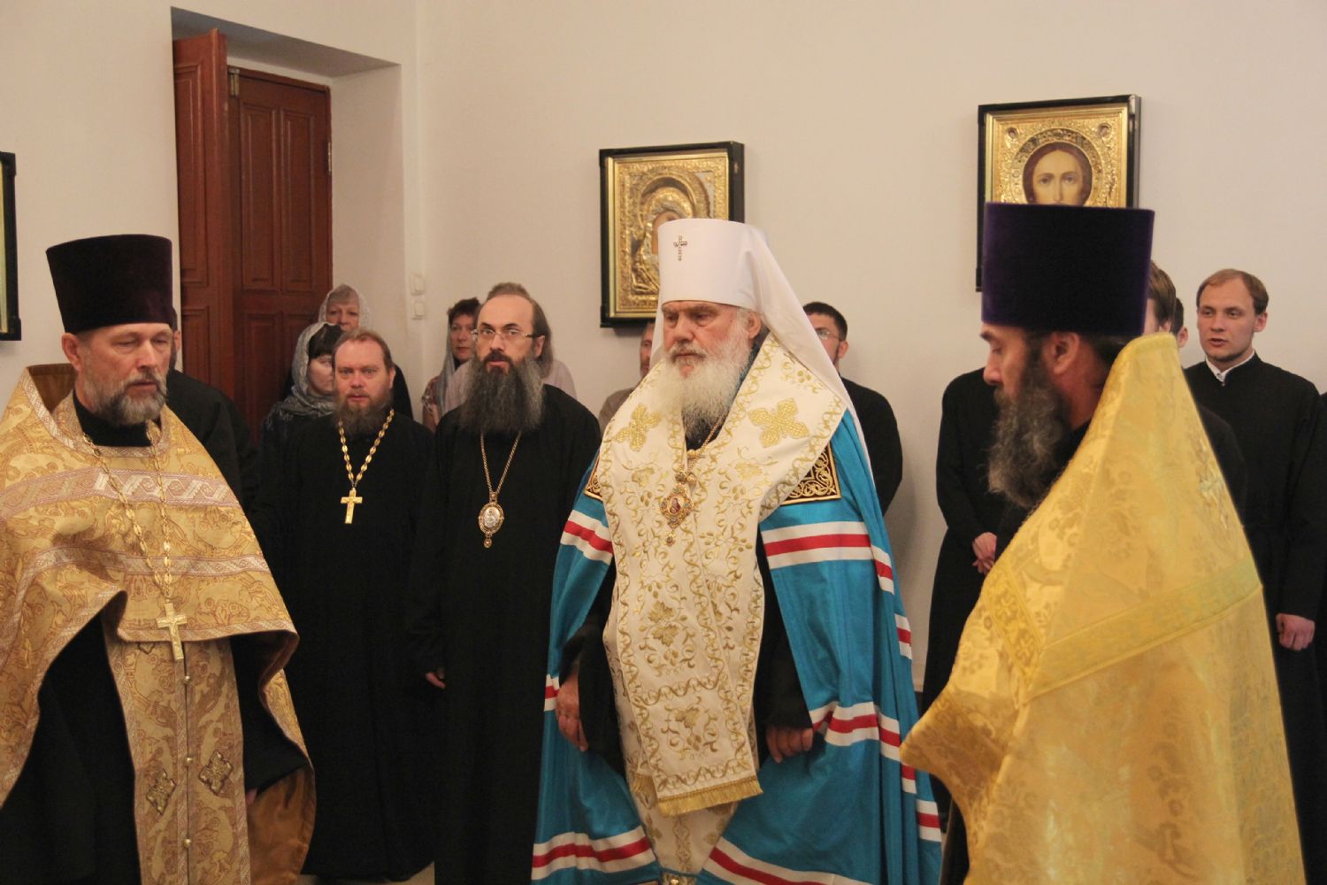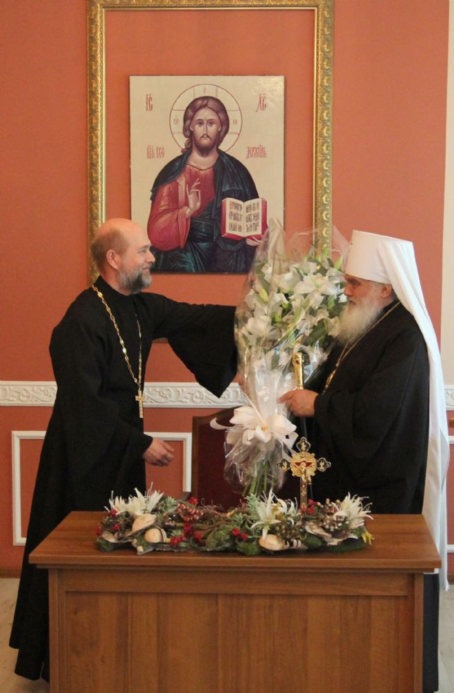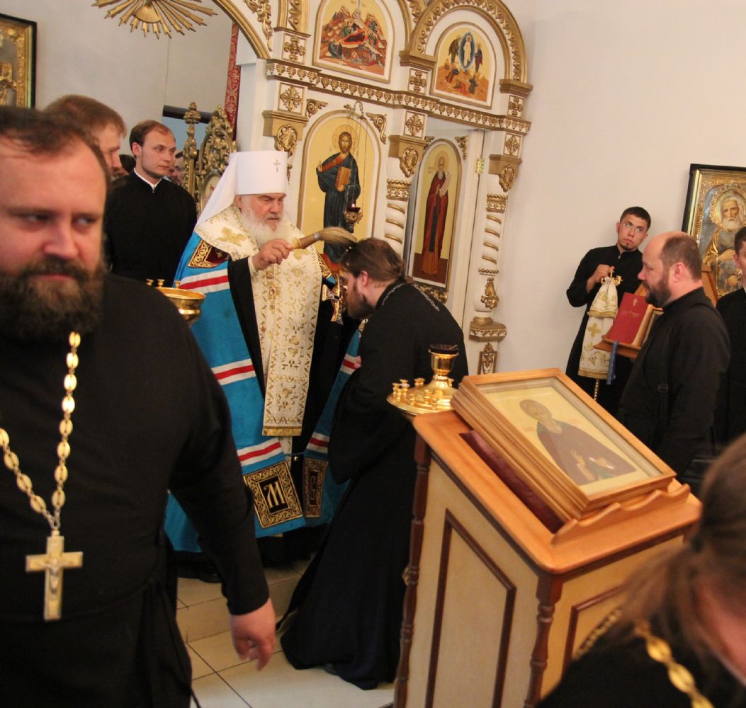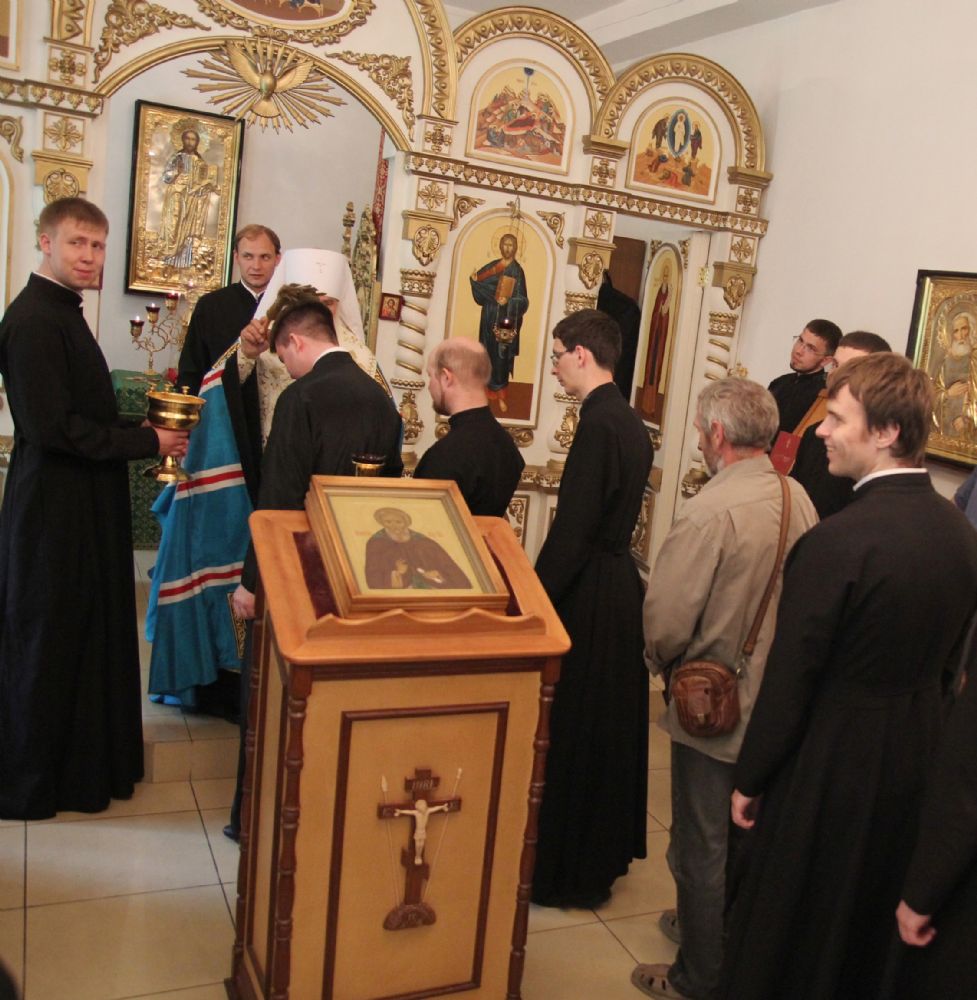 Владивосток. Актовый день начался с торжественного молебна в Крестовом Сергиевском храме Епархиального управления. Служение молебна возглавил митрополит Владивостокский и Приморский Вениамин. За богослужением молились: викарий Владивостокской епархии епископ Уссурийский Иннокентий; благочинный I округа епархии иерей Димитрий Федорин; проректоры и преподаватели Духовного училища, студенты и родственники выпускников.