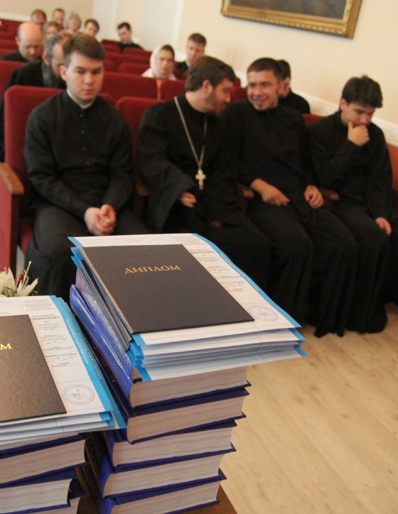 Нынешний, семнадцатый выпуск оканчивают шесть «очников» и четверо «заочников». Церемония вручения дипломов прошла в актовом зале Духовного училища. По уровню знаний в числе выпускников были отмечены, в частности, «очники» Александр Скрипов, Владимир Пыжиков и иерей Михаил Стуков; и «заочники» – иерей Николай Манукян, иерей Алексий Овчинников, Виталий Яшин, а также настоятель Георгиевского храма в Дальнегорске (Арсеньевская епархия) иерей Андрей Васякин.