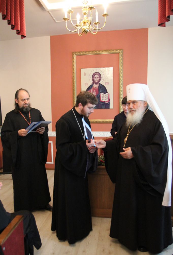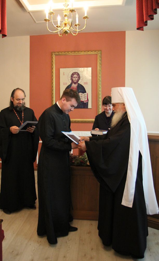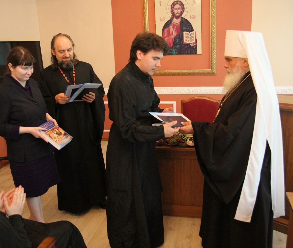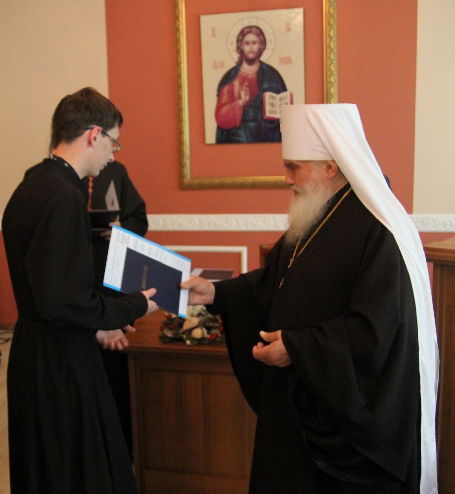 Вместе с Дипломами об окончании Духовного училища владыка Вениамин вручил выпускникам подарочное издание своего труда «Священная Библейская история». С благодарственным словом от выпускников-очников выступил иерей Михаил Стуков, от «заочников» – иерей Алексий Овчинников.