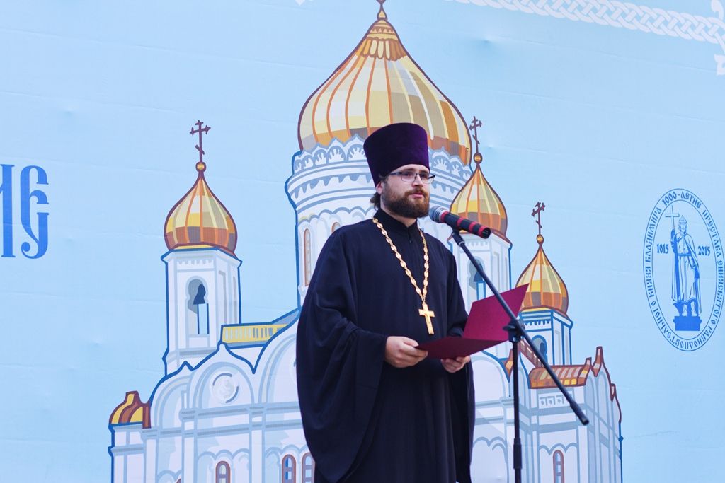 Обращение митрополита Владивостокского и Приморского Вениамина зачитал священник Димитрий Федорин, благочинный первого округа Владивостокской епархии, в котором в частности, говорится: «Праздник Крещения Руси – близок значительной части нашего населения. Ведь духовное наследие князя Владимира мы можем наблюдать и сегодня, спустя тысячелетие. Наследие его прежде всего в том, что большая часть россиян и поныне являются крещёными. Из поколения в поколение передаётся духовный завет князя Владимира Красно Солнышко: «Русь Святая, храни веру Православную, в ней же тебе утверждение!». Отец Димитрий поблагодарил администрацию города и оргнизаторов за прекрасный праздник, собравший немало горожан.
