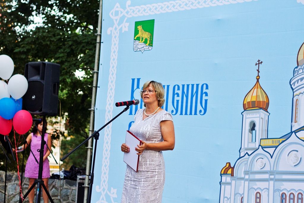 К собравшимся обратилась представитель администрации города Ирина Самусенко. Она напомнила, что Празднование Крещения Руси во Владивостоке проводится ежегодно с 2010 года, когда он был утвержден как церковно-государственный.