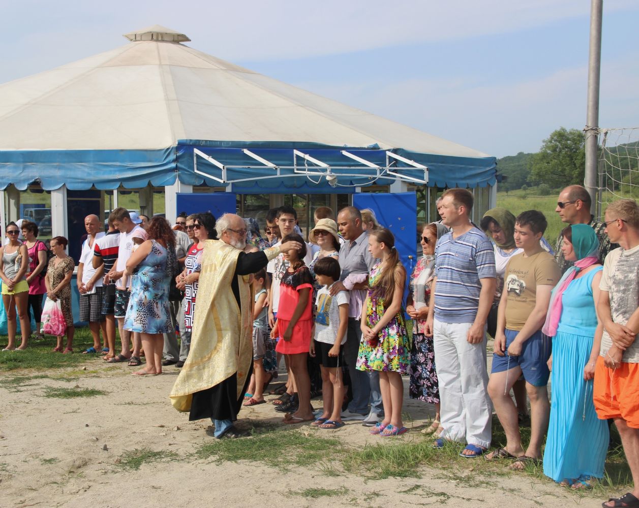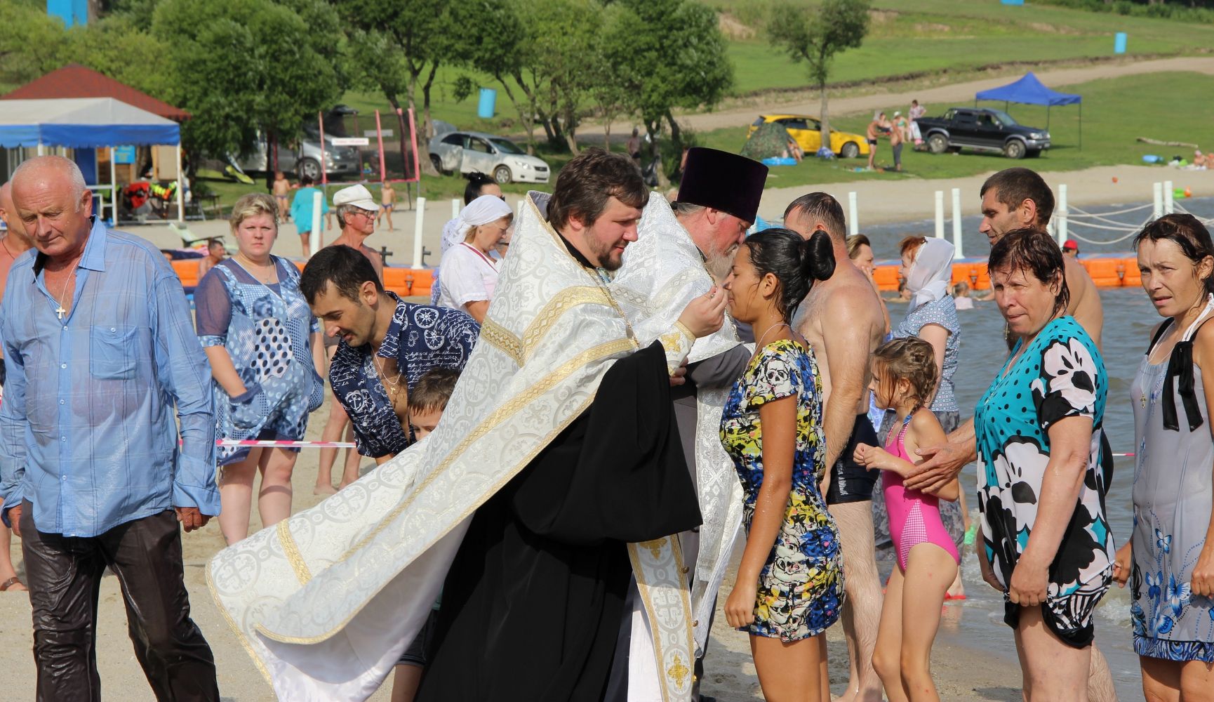 Неудивительно, что массовые Крещения на Кугуках становятся для Приморья доброй традицией: уже четвертый год сотни приморцев приезжают сюда, чтобы принять Таинство. Отрадно и то, что в этом году условия для Крещения оказались ещё комфортнее – организаторы зоны отдыха, расположенной у водохранилища, переоборудовали крытый шатер, в котором крещаемые могли оставить вещи или укрыться в случае непогоды. Теперь этот шатер застеклен.