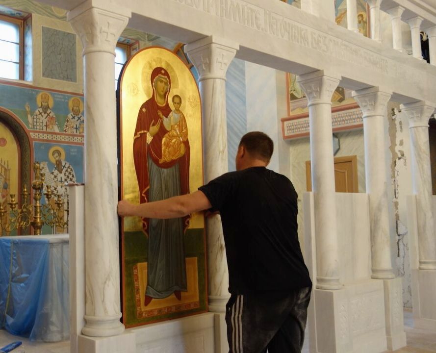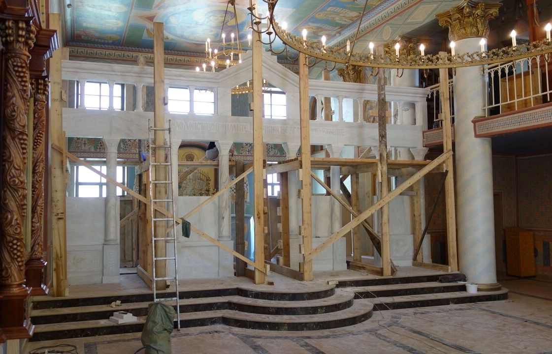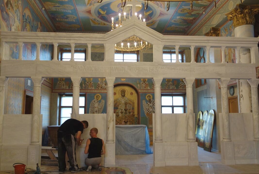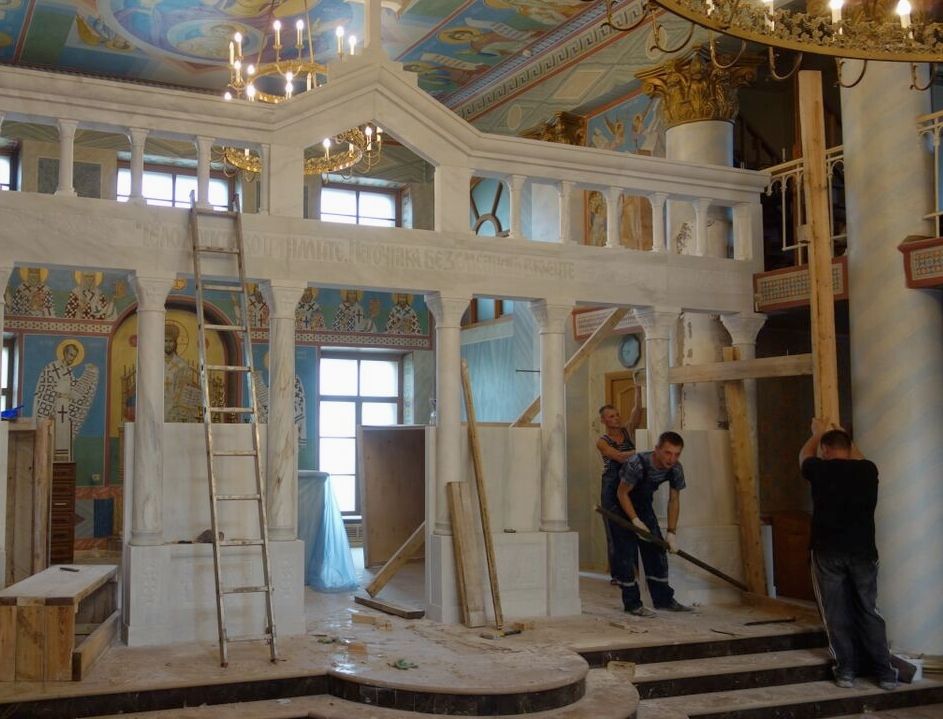 Владивосток. Работы по установке уникального иконостаса ведутся в Казанском храме. Новый иконостас выполнен из настоящего цельного мрамора, добытого в древнейших залежах на севере Греции. На карьер-заводе BEAMAT из мрамора выточили детали будущего иконостаса, затем морем – через пол земного шара – доставили в порт Владивосток. Общий вес иконостаса составит 8 тонн, длина – 7,5 метров, а высота – 5 м.