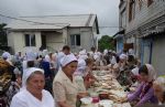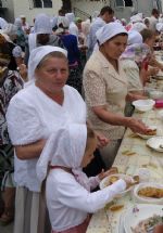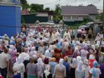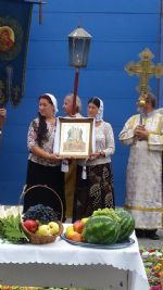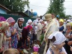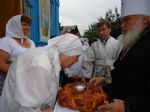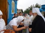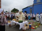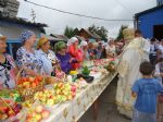 Затем митрополит Вениамин возглавил праздничный Крестный ход вокруг Преображенского храма, участниками которого стали более двухсот прихожан, и совершил освящение начатков плодов, которые выставили прихожане во дворе храма.