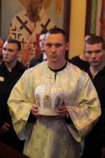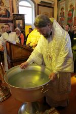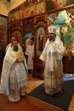 Его Преосвященству сослужили: протоиерей Владимир Серебренников, настоятель храма в честь святого равноапостольного великого князя Владимира п. Ливадия; иерей Георгий Москаленко, клирик Казанского кафедрального собора г. Находка.