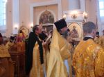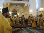 Митрополит Владивостокский и Приморский Вениамин, архиепископ Сендайский Серафим и епископ Уссурийский Иннокентий возглавили в Покровском кафедральном соборе служение Соборной Божественной литургии.