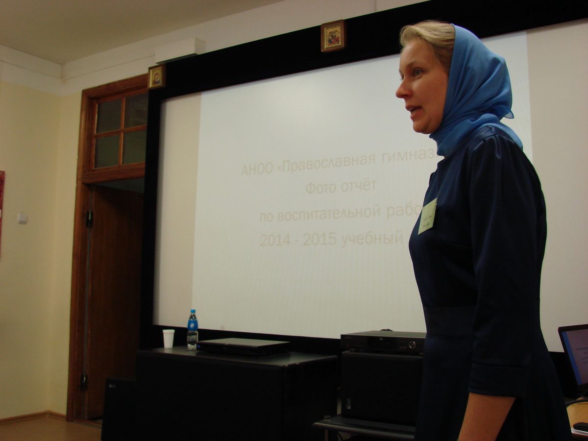 Лидия Михайловна Титова рассказала об организации воспитательного учебного процесса по решению задач духовно-нравственного воспитания в Православной гимназии и показала слайды мероприятий и праздников.