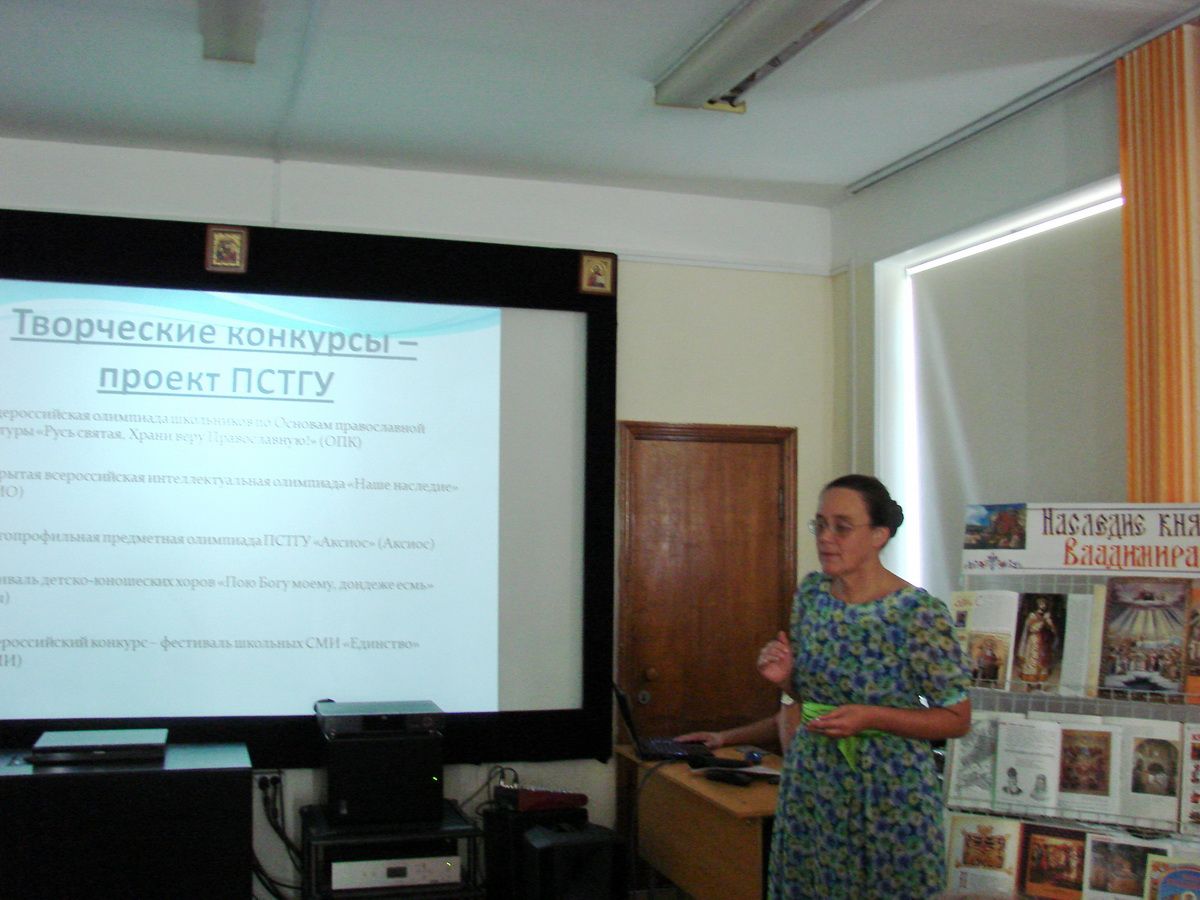 Светлана Владимировна Суслова рассказала о подготовке и участии учеников гимназии во Всероссийских олимпиадах по основам православной культуры, о поездках на финал в Москву и о том, как проходили финалы. Поделилась методическими материалами.