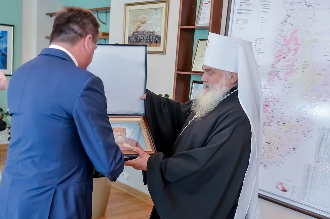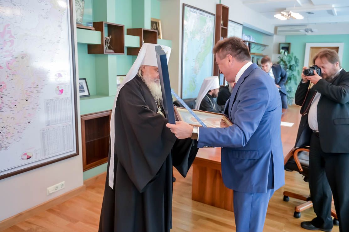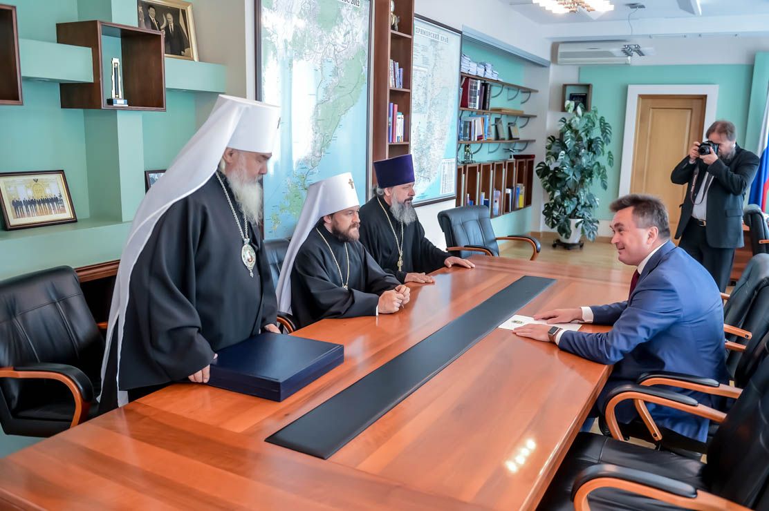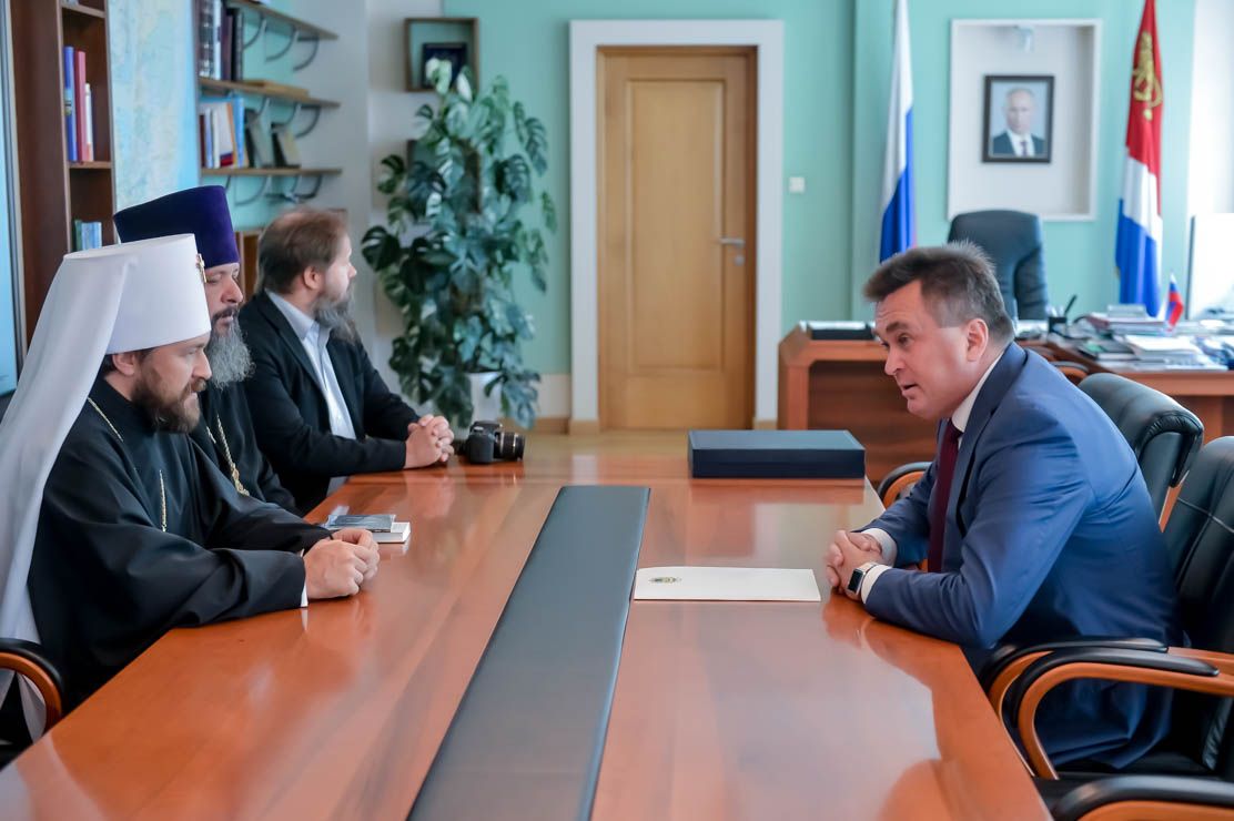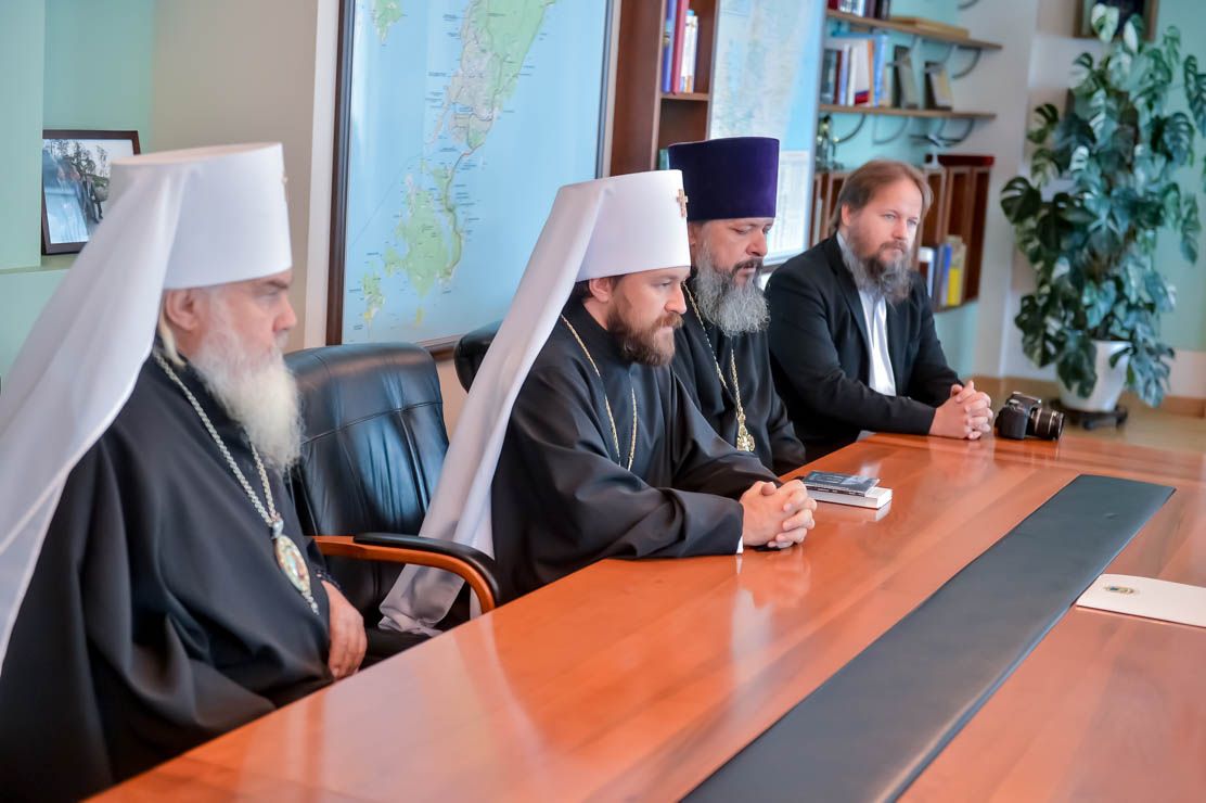 Владивосток. Губернатор края Владимир Миклушевский встретился сегодня с митрополитом Волоколамским Иларионом, руководителем Отдела внешних церковных связей Московского Патриархата и с Главой Приморской митрополии митрополитом Владивостокским и Приморским Вениамином.